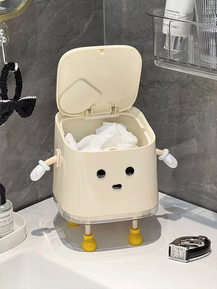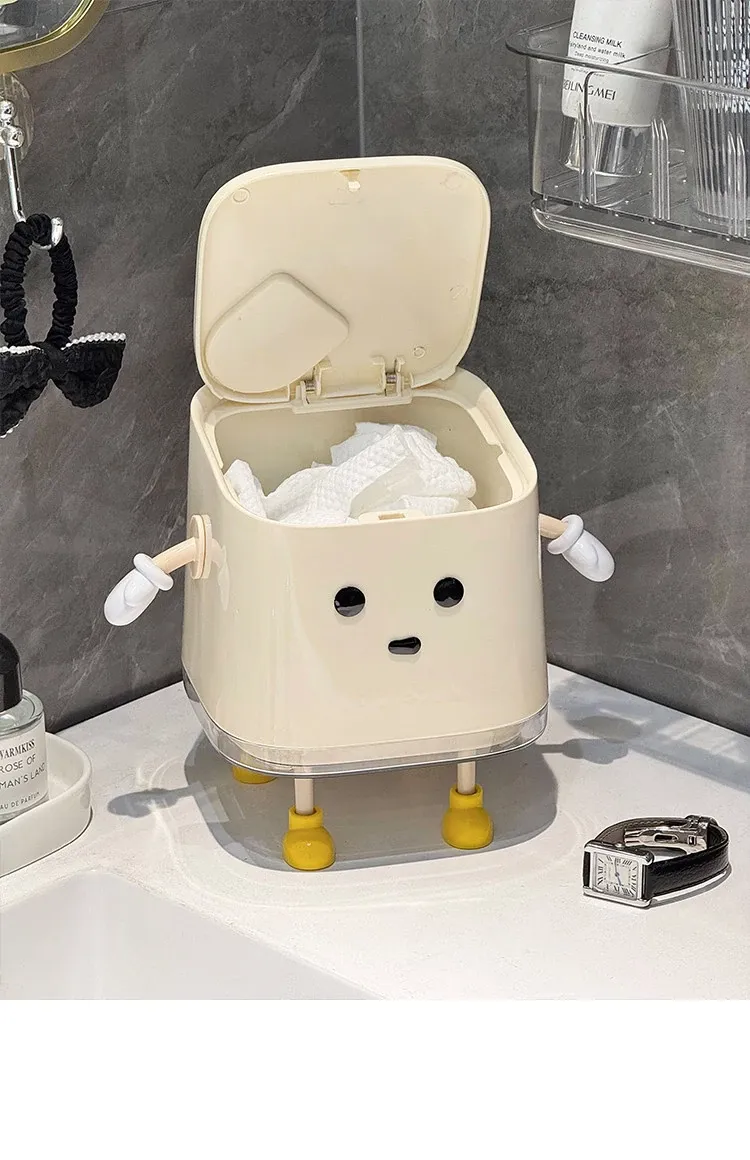 デスクトップゴミ箱【カートゥーンスタンド型/隙間ブラシ付き】