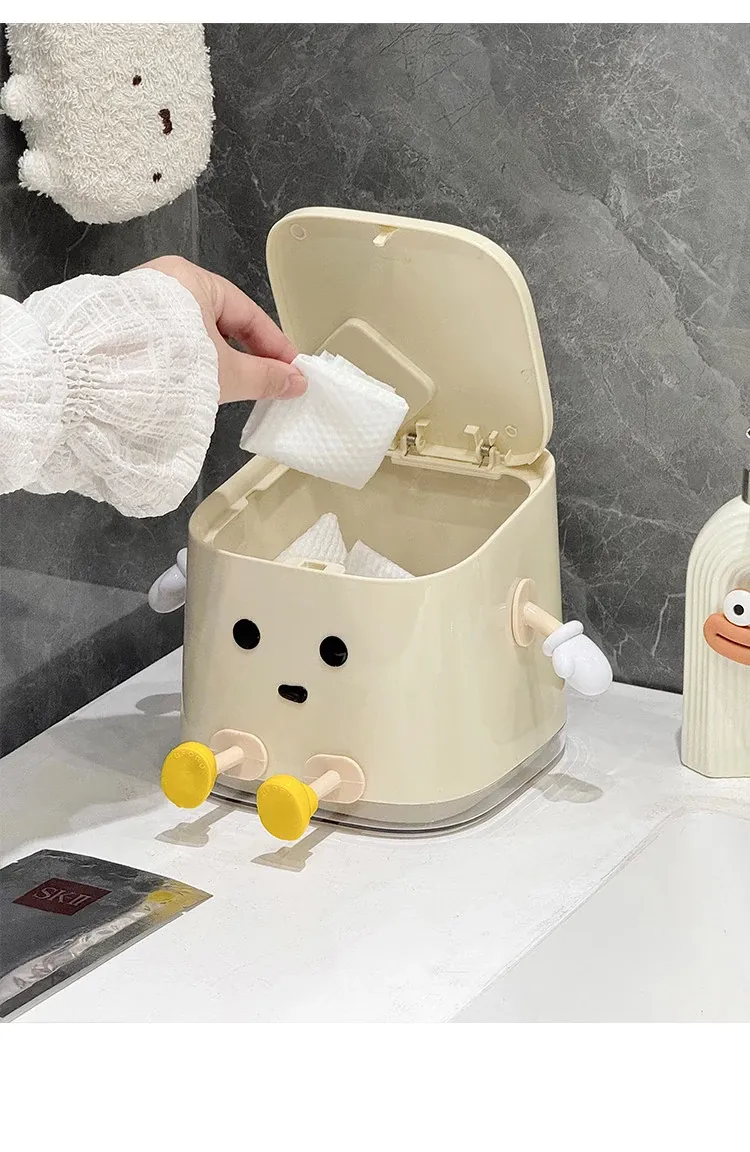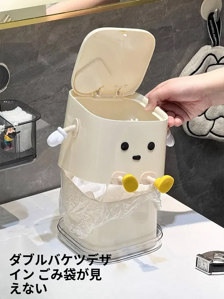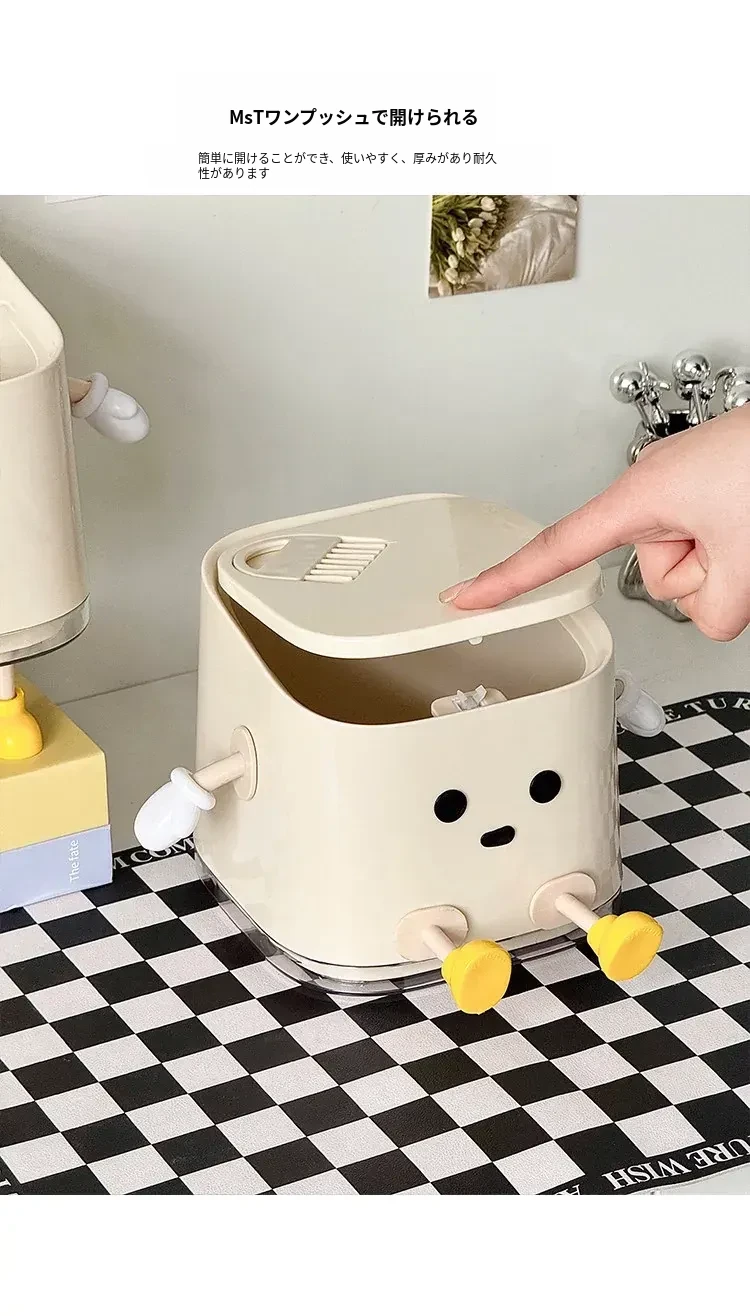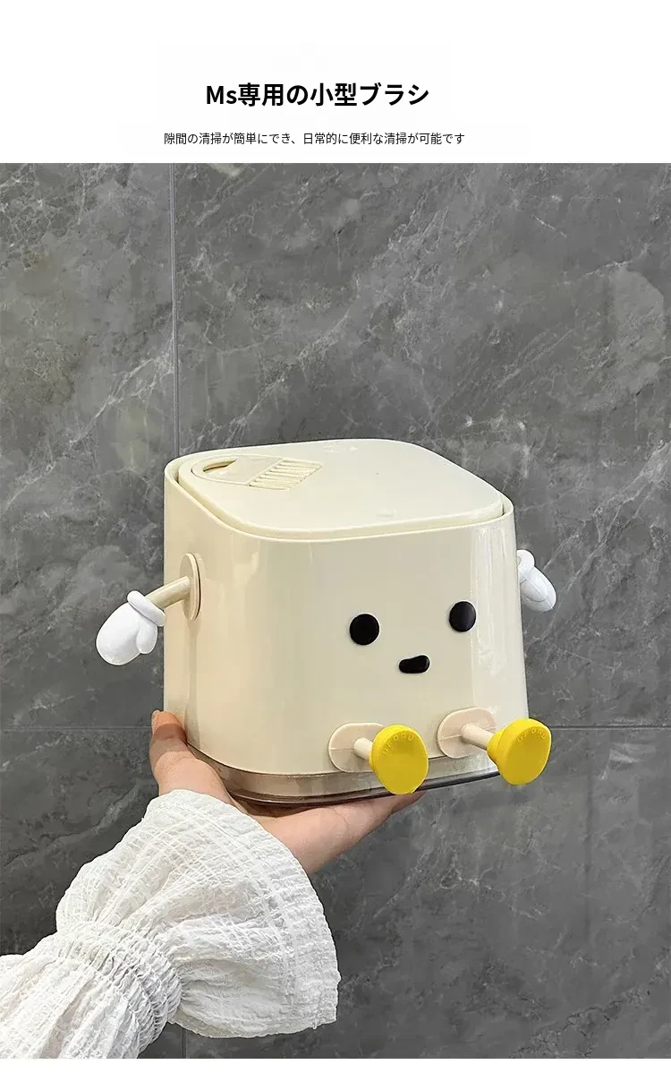 デスクトップゴミ箱【カートゥーン座り型/隙間ブラシ付き】