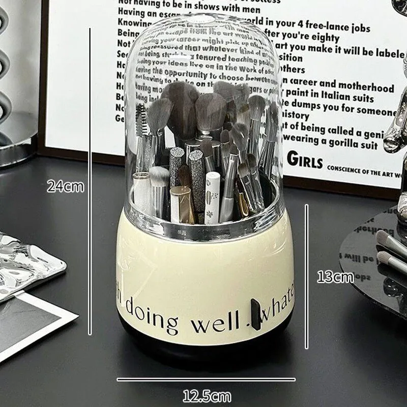 クリーム色-化粧ブラシ収納筒【蓋付き】