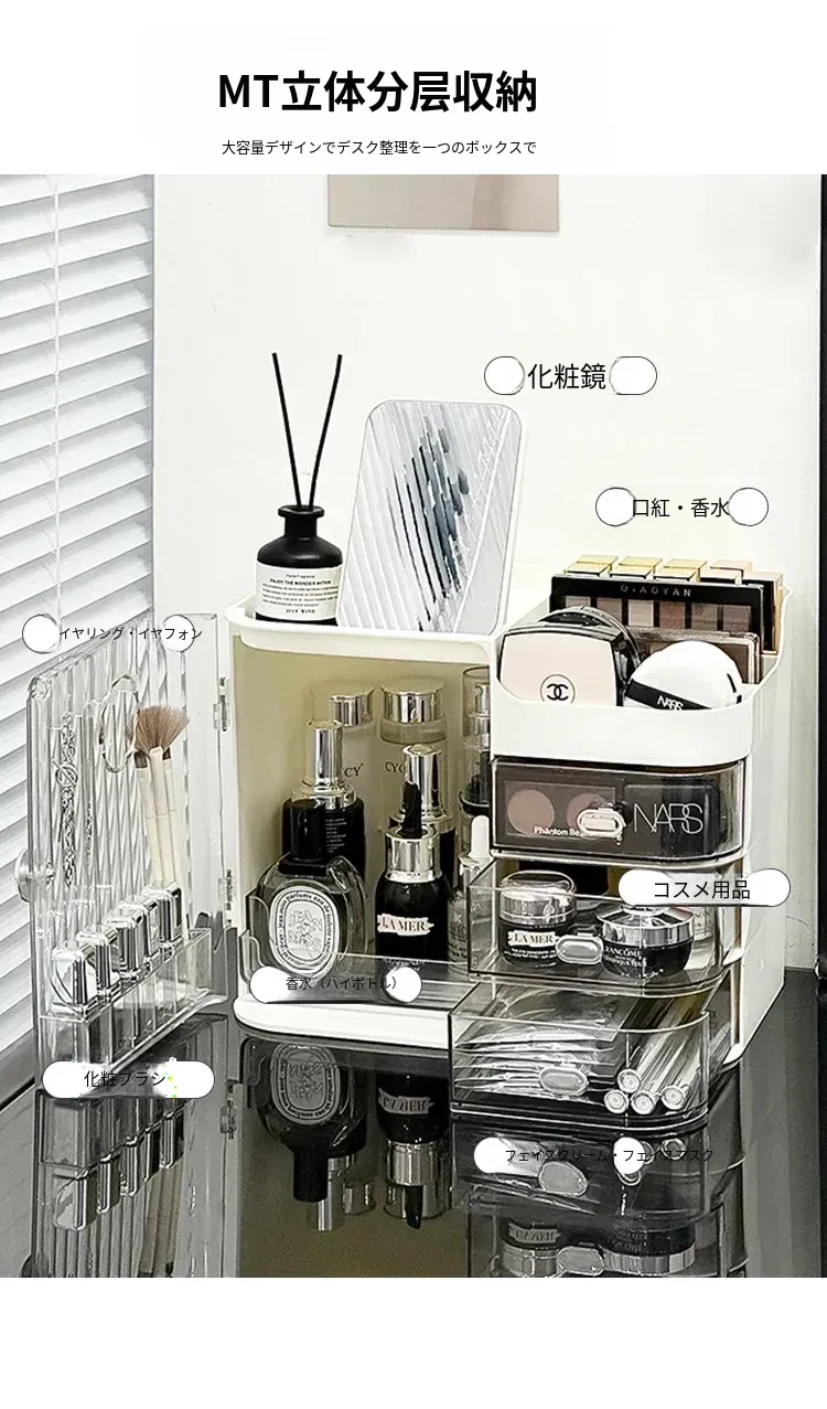 高級感溢れる化粧品収納ボックス|デスク上を美しく整理!スキンケア・香水・リップをスタイリッシュに収納できる卓上オーガナイザー。メイクアップ台の必需品!