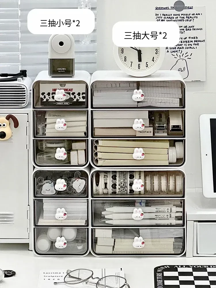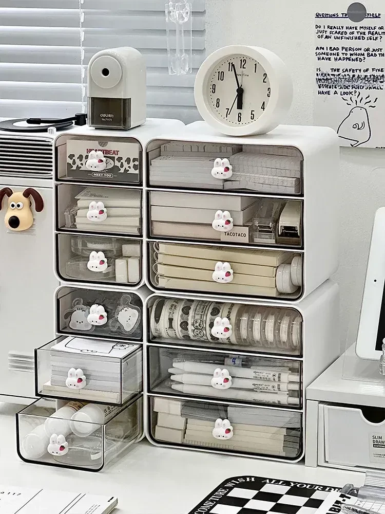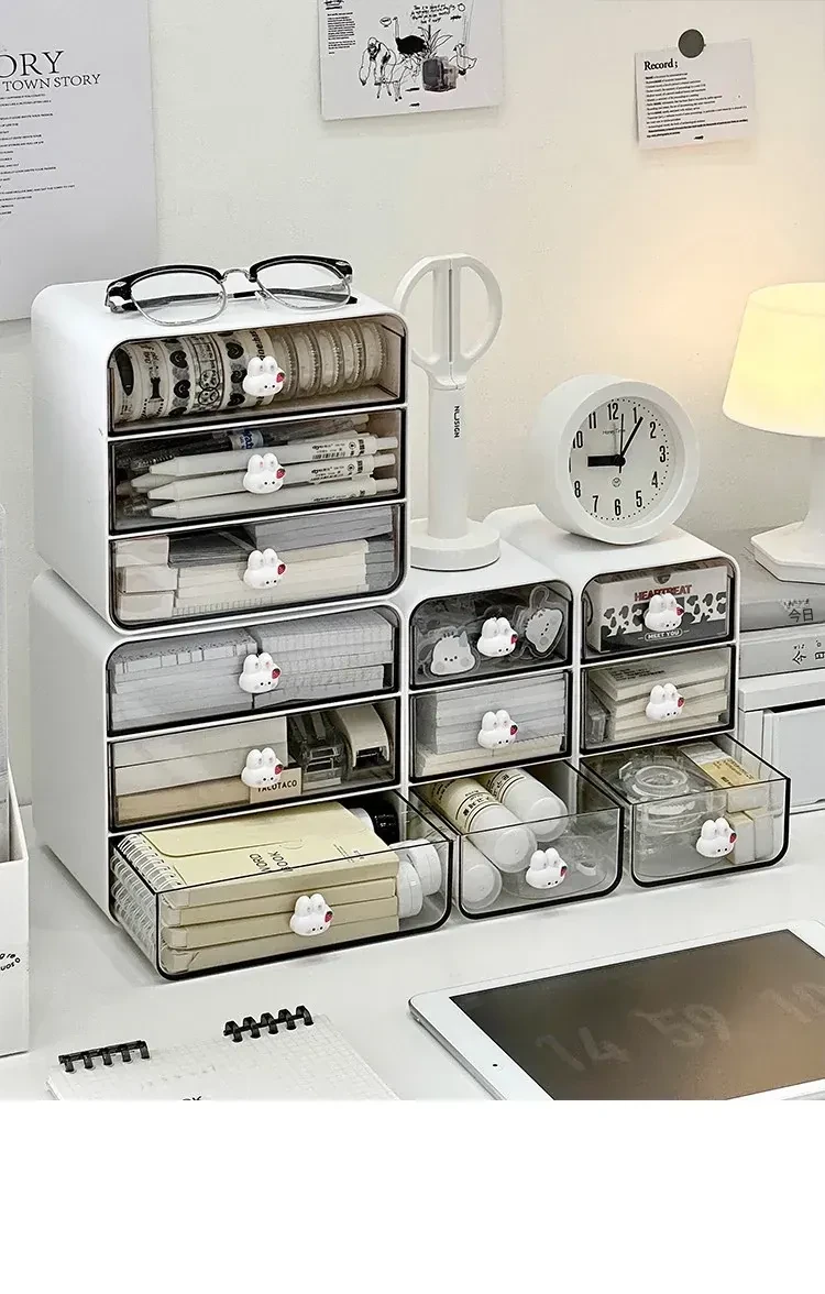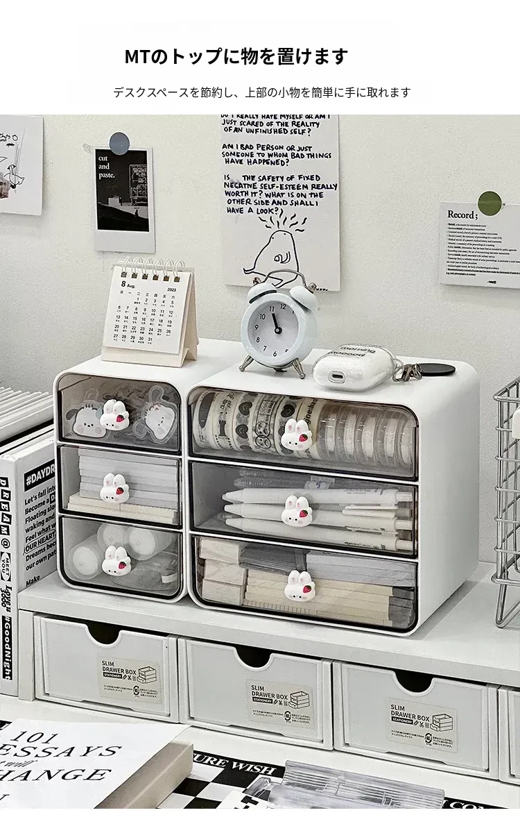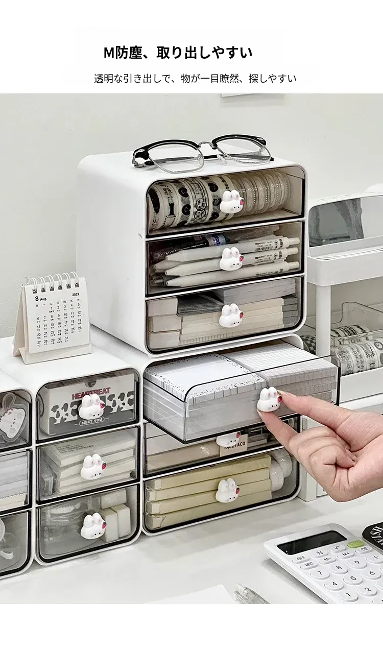 デスク整理ボックス 引き出し式文具・小物収納ラック 透明アクリル製 防塵オーガナイザー おしゃれで機能的なデスク周りの必需品!