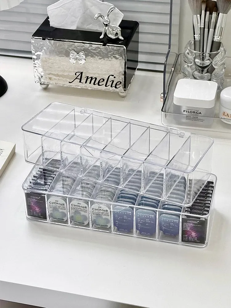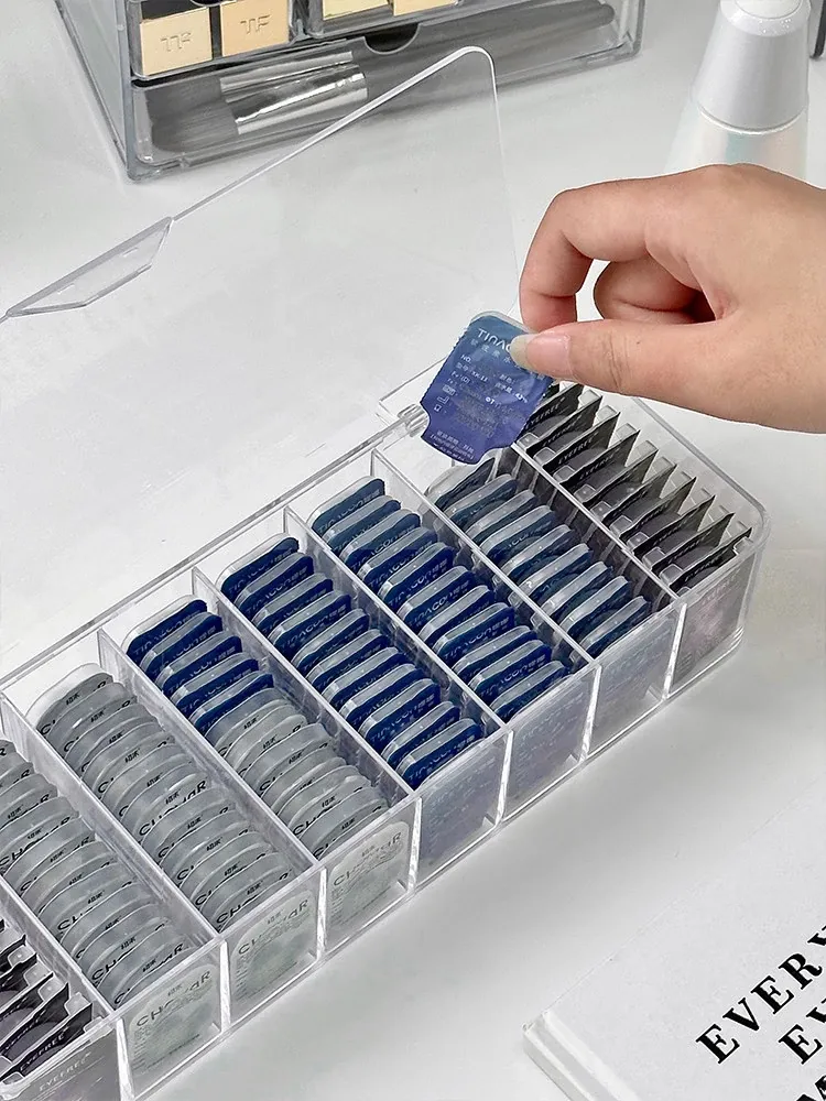 日用使い捨てカラコン収納ボックス 透明防塵仕切り付き 隠しコンタクトレンズ整理ケース デスクトップ用アクリルフタ付き収納ラック! おしゃれで便利、あなたの目元を美しくサポートします!