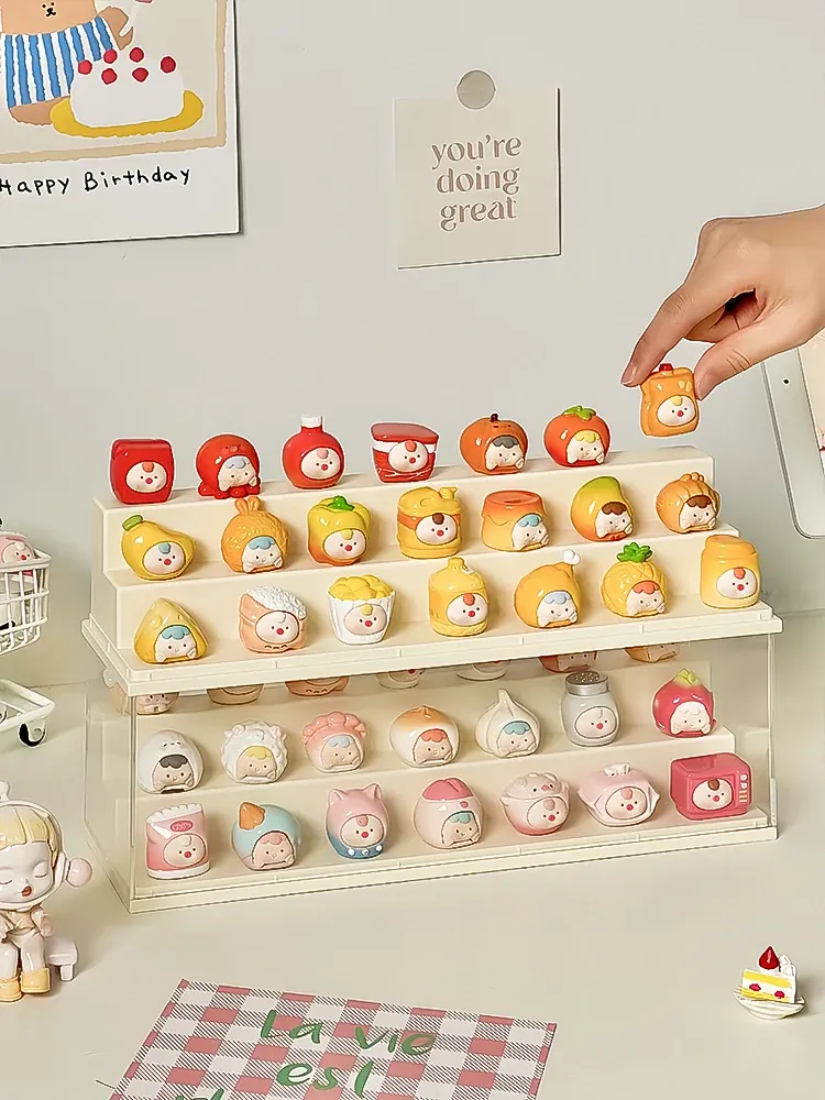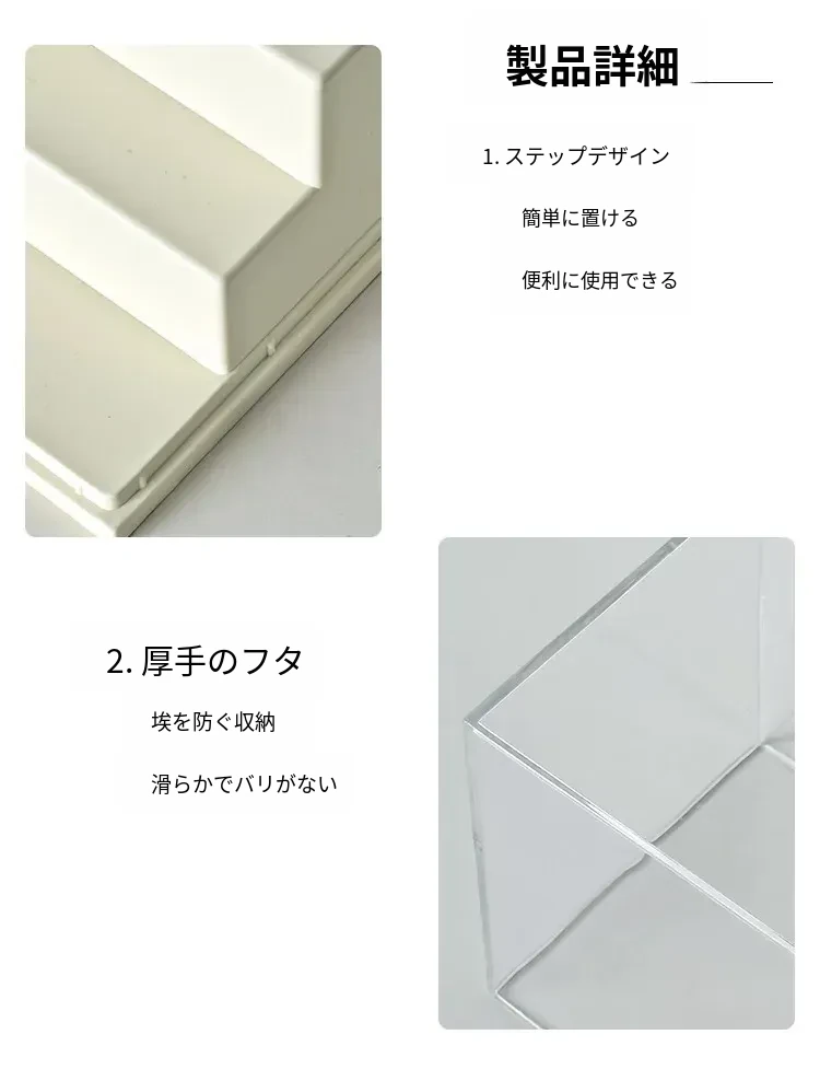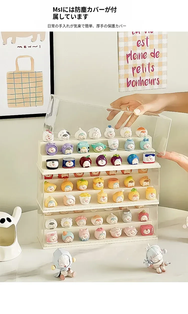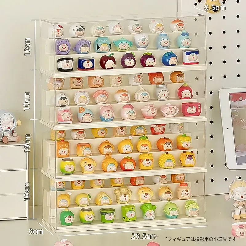 透明防塵の盲箱ディスプレイ収納ボックス - 可愛いフィギュアのための階段型ディスプレイラック!ポップマートの小さなコレクションを美しく見せる、スタイリッシュで実用的な展示キャビネット。