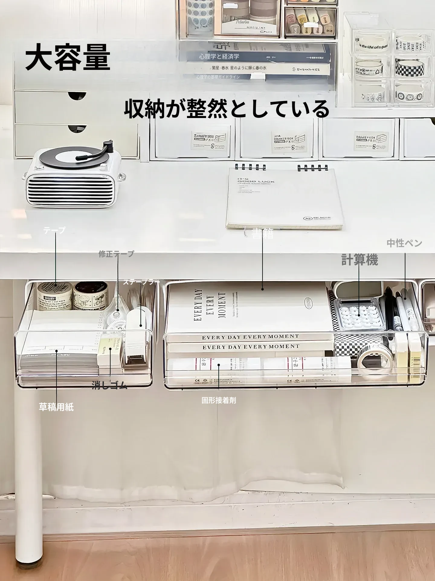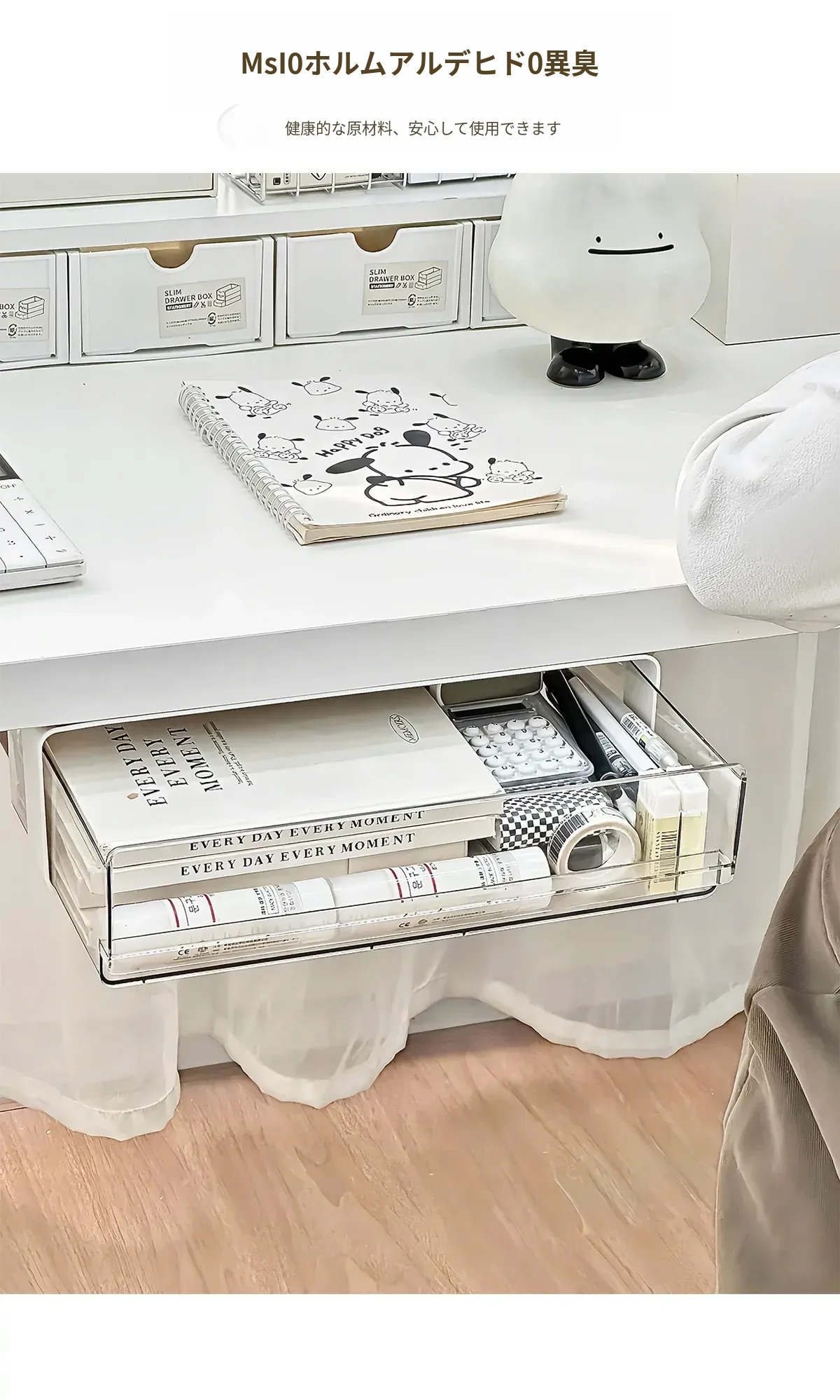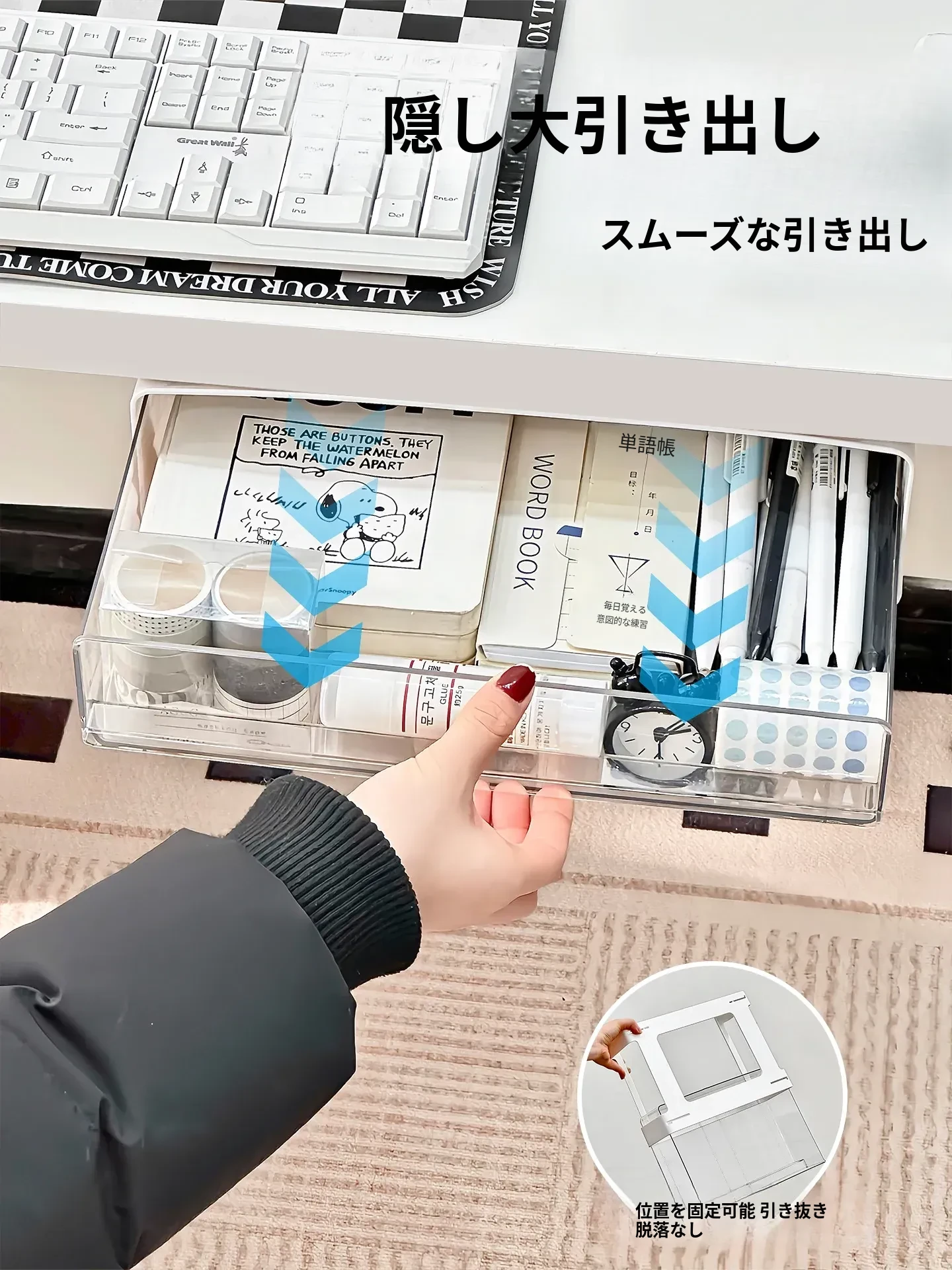 デスク下収納ボックス 隠し引き出し付き オフィススペースの整理整頓に最適 文房具やノートをスッキリ収納する便利アイテム!