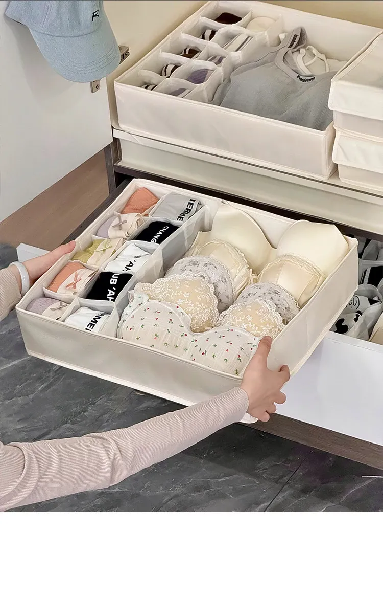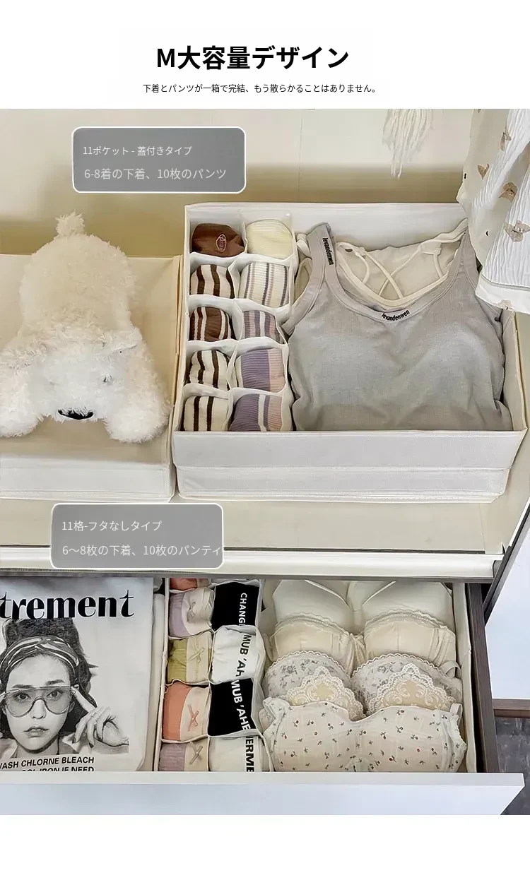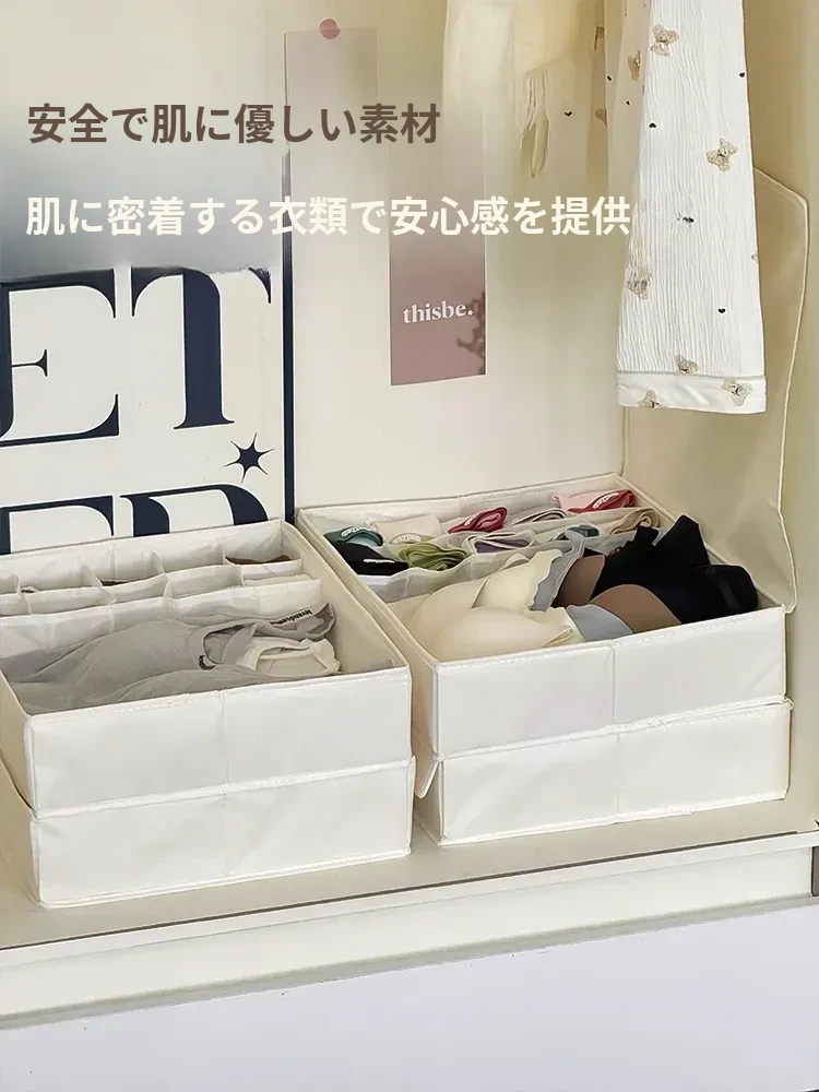 家庭用内衣収納ボックス|靴下・下着・ブラジャーもすっきり整理!便利な仕切り付き収納ケースで、クローゼットがスッキリ!おしゃれで機能的な収納アイテムです。