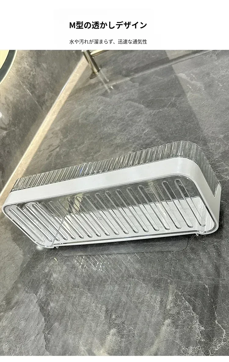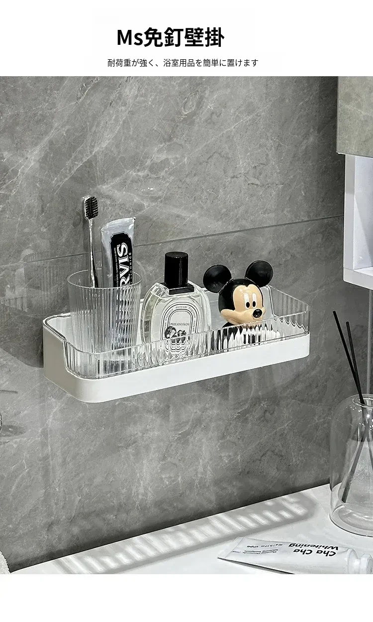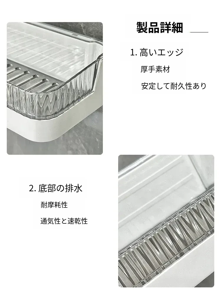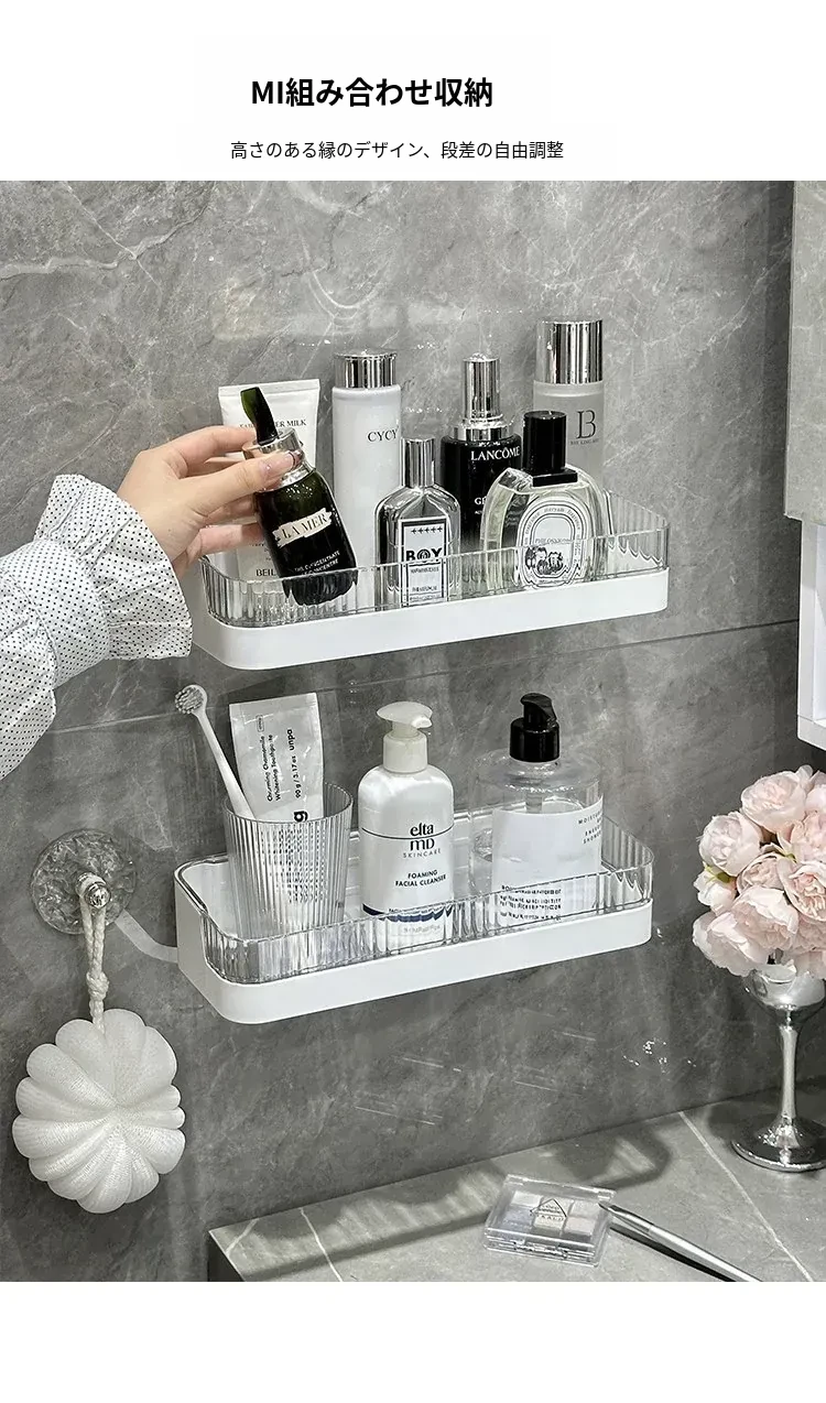 壁掛け収納ラック - 工具不要で簡単設置!バスルームやトイレに最適な水切り機能付きの衛生的な整理棚。洗面台周りをスッキリ整頓し、快適なバスタイムを実現します!