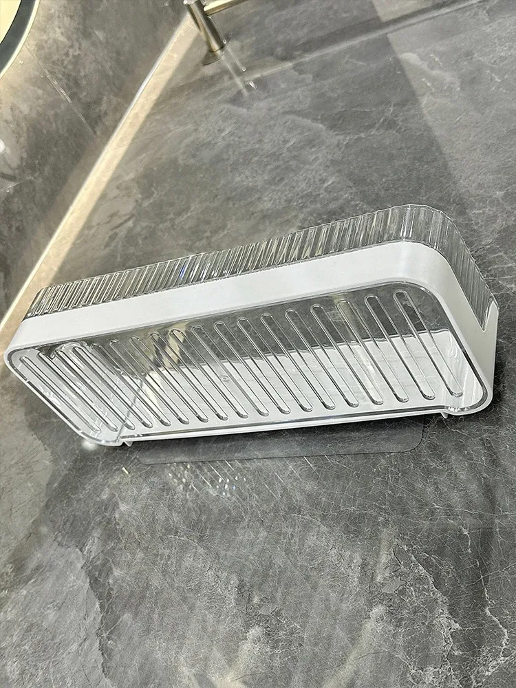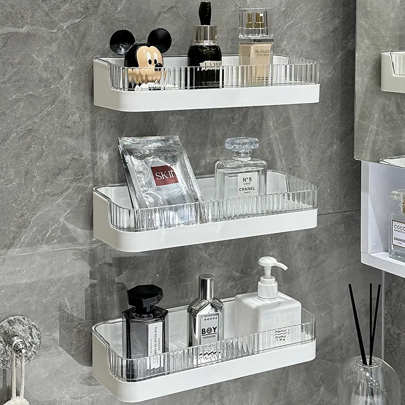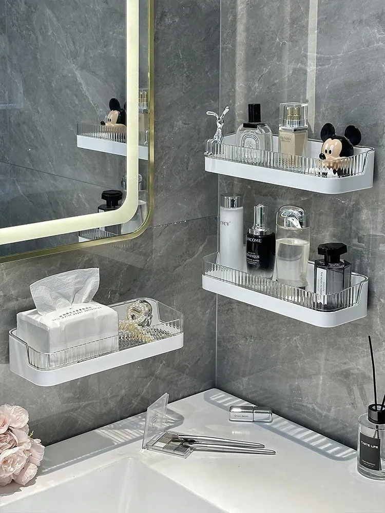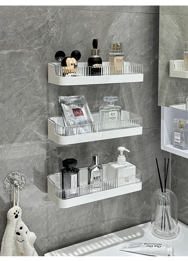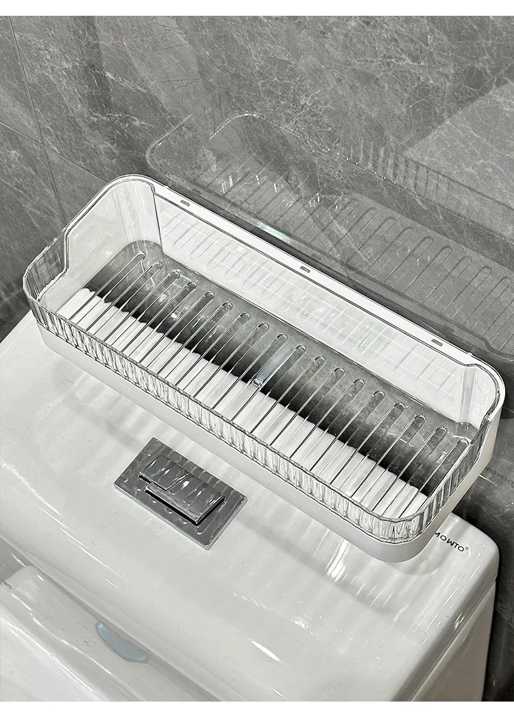 壁掛け収納ラック - 工具不要で簡単設置!バスルームやトイレに最適な水切り機能付きの衛生的な整理棚。洗面台周りをスッキリ整頓し、快適なバスタイムを実現します!
