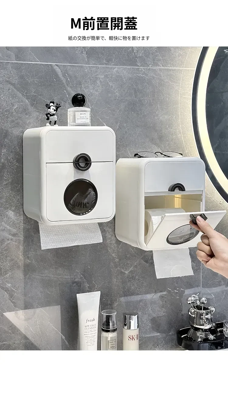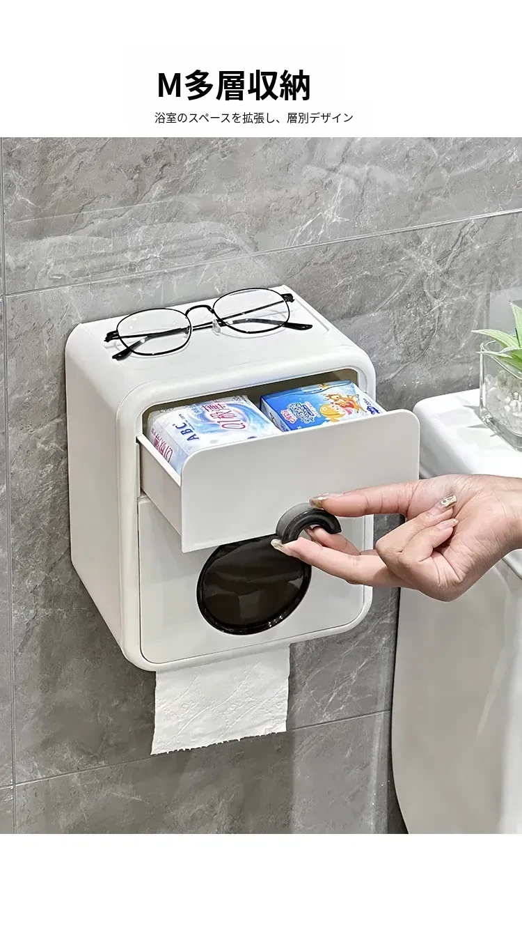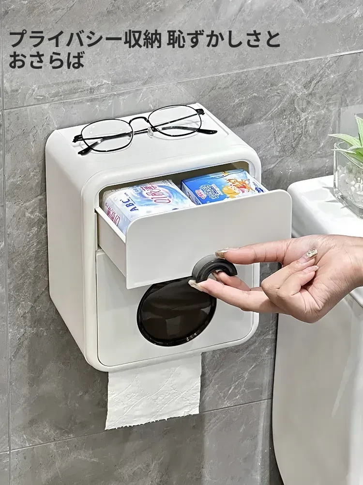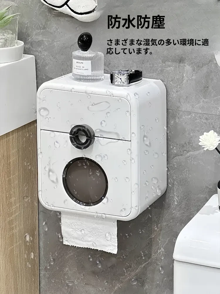 ウォールマウントトイレットペーパーケース - 防水&穴あけ不要!おしゃれなトイレ収納で、清潔感あふれるバスルームを実現。使いやすさとデザイン性を兼ね備えた便利アイテム!