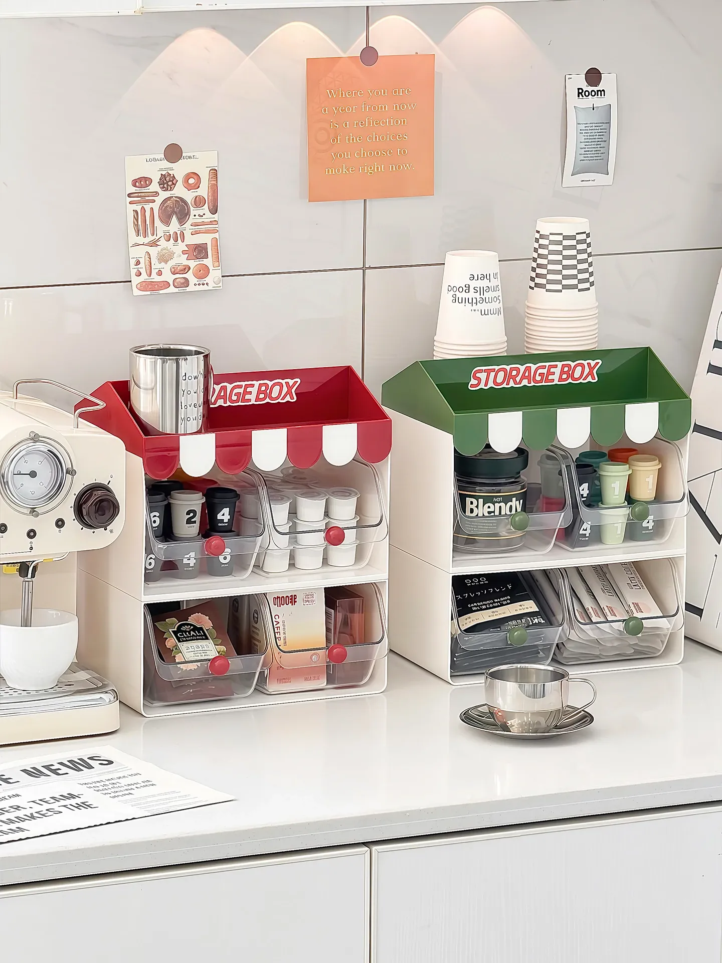 おしゃれな多層ティーバッグ収納ボックス - コーヒーや茶葉を整理整頓!オフィスや水分補給エリアに最適なデスク上のスナックオーガナイザー。シンプルで機能的なデザインで、毎日のリフレッシュタイムをもっと楽しく!