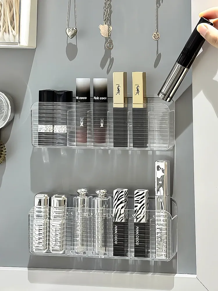 透明アクリル仕切り付き壁掛けミラーキャビネット収納ボックス - バスルーム・トイレに最適!口紅や化粧品をスマートに整理して、美しさを引き立てるおしゃれな収納ラック!