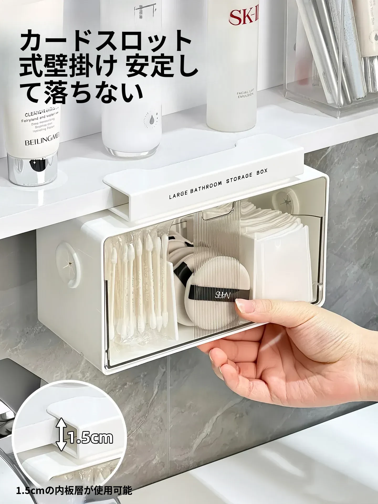 壁掛けメイク収納ボックス - おしゃれな化粧品・口紅・香水用ラック!省スペースでスッキリ整理、浴室を美しく彩る便利アイテム!