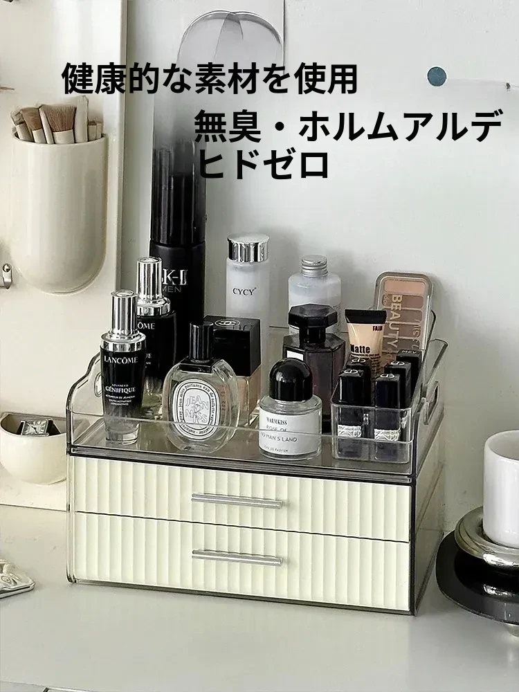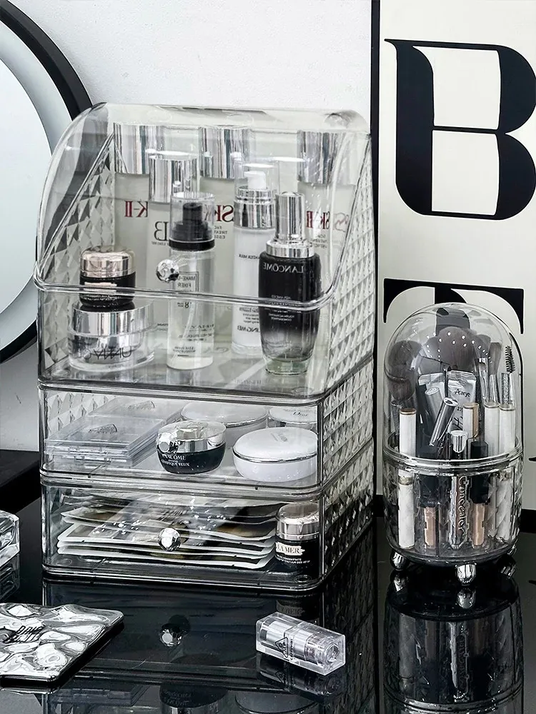 高級感漂う化粧品収納ボックス|デスク上のホコリを防ぐ多層スキンケア用品ラック|アクリル製整理箱で美しく整頓!
