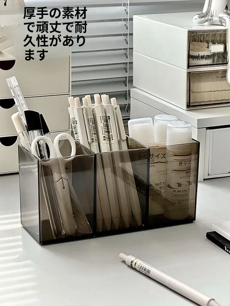 デスク用アクリル透明ペンホルダー – おしゃれで高級感溢れる大容量収納、学生やオフィスに最適なペン立て!整理整頓も簡単で、デスクをスッキリと魅力的に演出します。