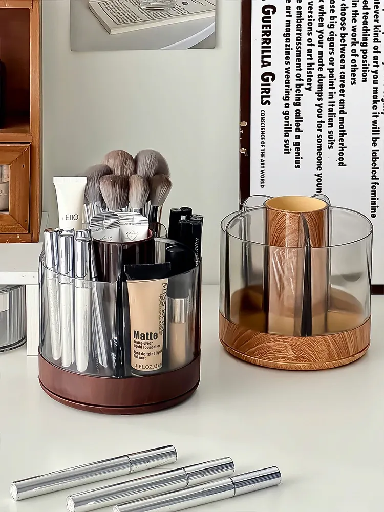 回転式メイクブラシ収納ボックス - デスクトップで整理整頓!化粧品、リップスティック、眉ペン、ブラシをスマートに収納できるおしゃれなアイテム。メイクアップ台を美しく演出します!