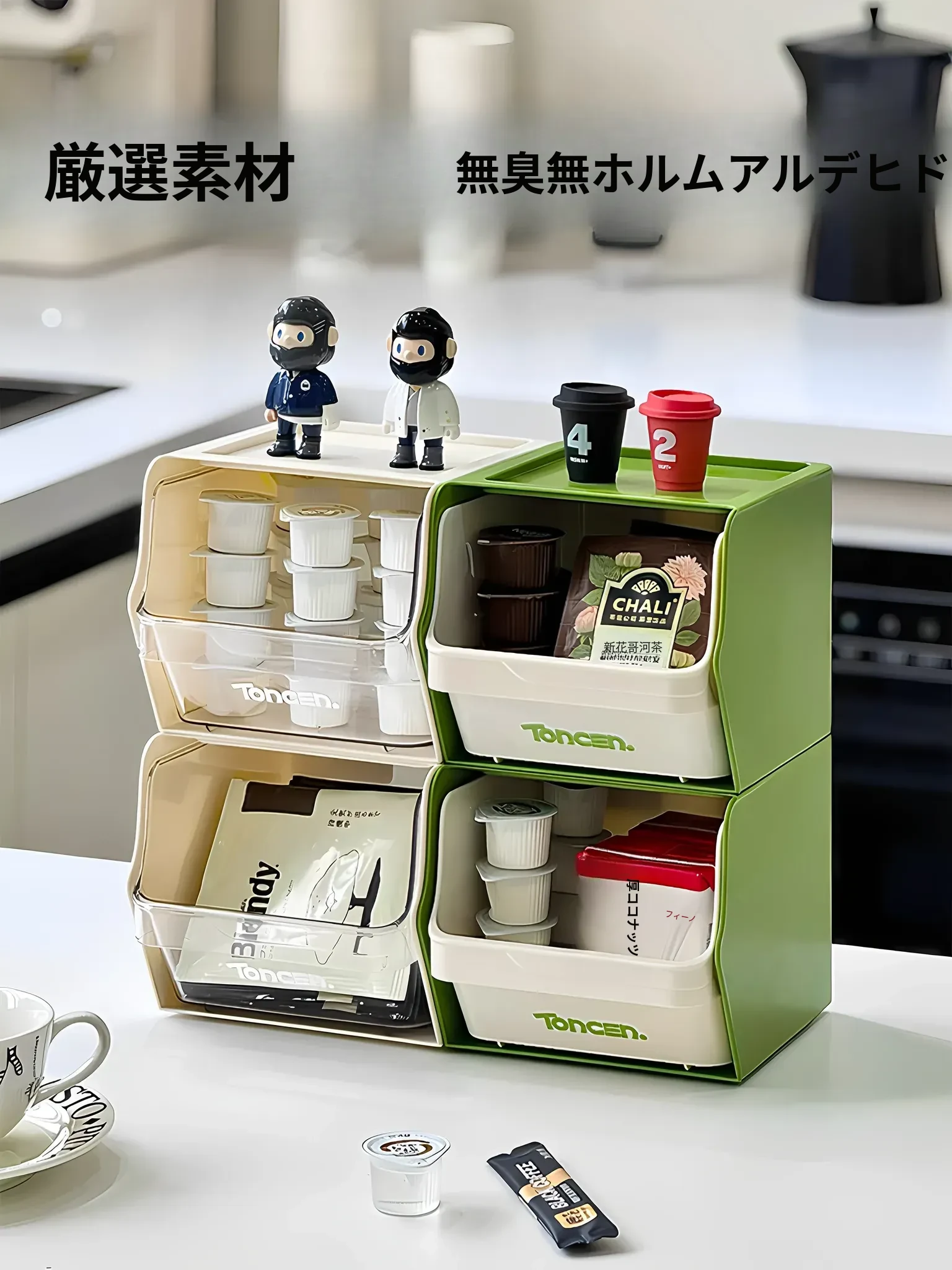 ティーバッグ収納ボックス - オフィスやカフェで大活躍!コーヒーカプセルやスナックも整理整頓。机上をスッキリさせて、あなただけの快適空間を演出。おしゃれで機能的な収納アイテムです!