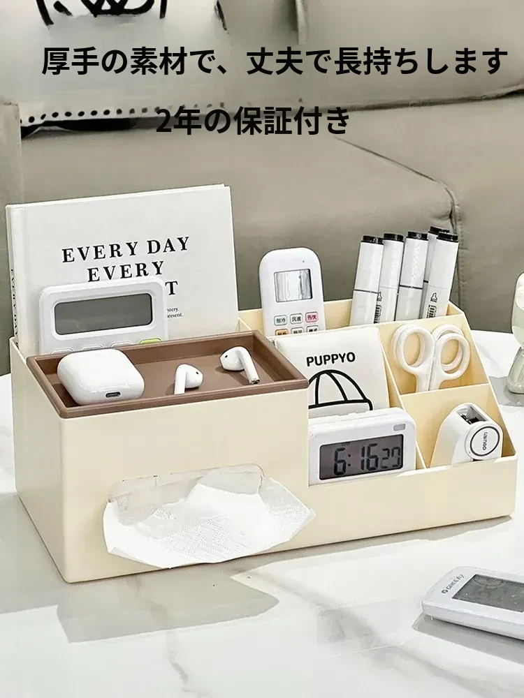 デスク用ティッシュボックス|家庭用・多機能オフィス整理|リビングやコーヒーテーブルに最適|リモコン収納もできるクリエイティブなティッシュケース