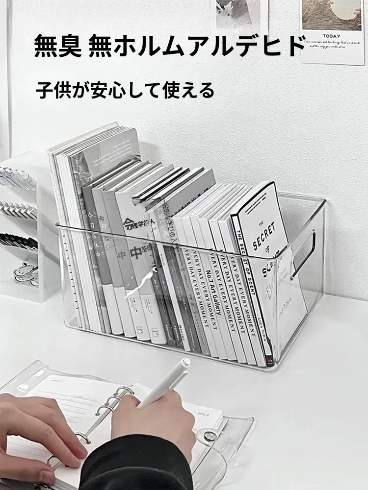 アクリルデスク収納ボックス 透明 学生向け 文房具・書籍整理に最適!オフィス用ファイルバスケットとしても活躍!シンプルでおしゃれなデザインで、デスク周りをスッキリ整理しましょう!