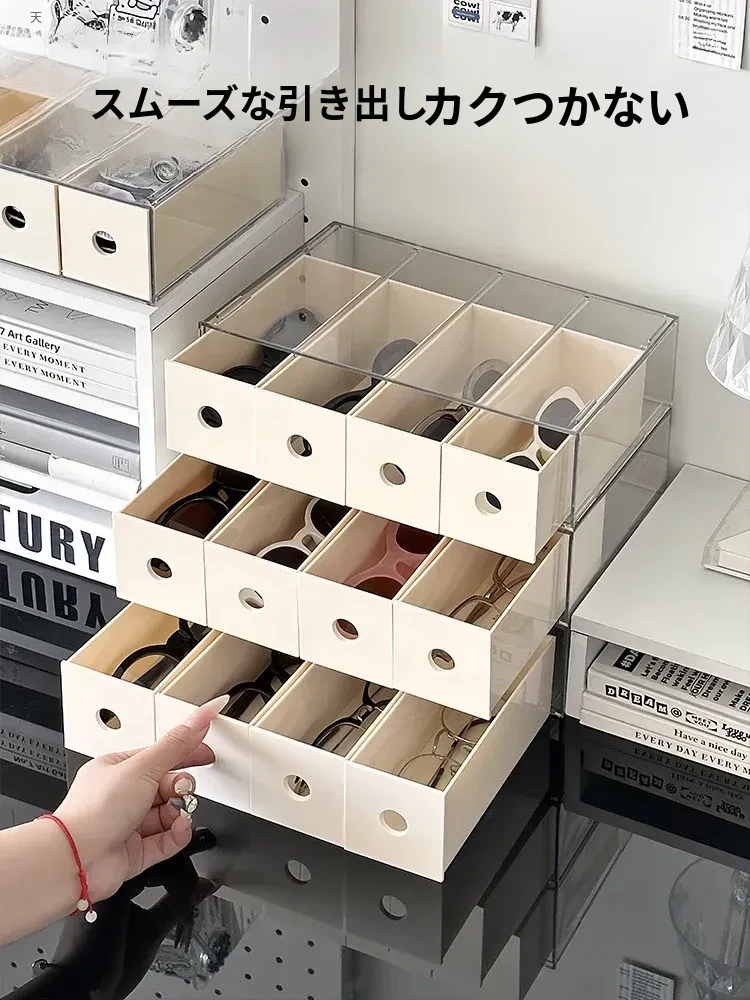 多機能!アクリル製の引き出し式メガネ収納ボックス - サングラスや子供用近視メガネも整理整頓!おしゃれで便利な収納アイテムを手に入れよう!