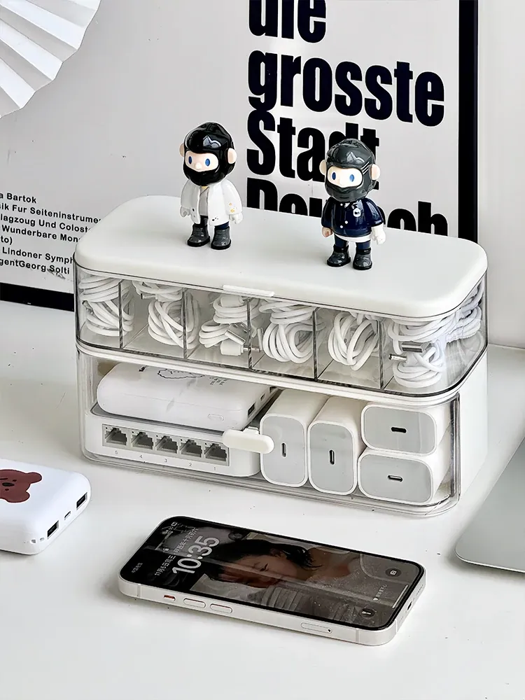 データケーブル収納ボックス デスクトップ充電器 スマホ電源ケーブル整理グッズ アクリル製 蓋付き 防塵 ラインオーガナイザーでスッキリ!あなたのデスクを美しく保つ必需品!