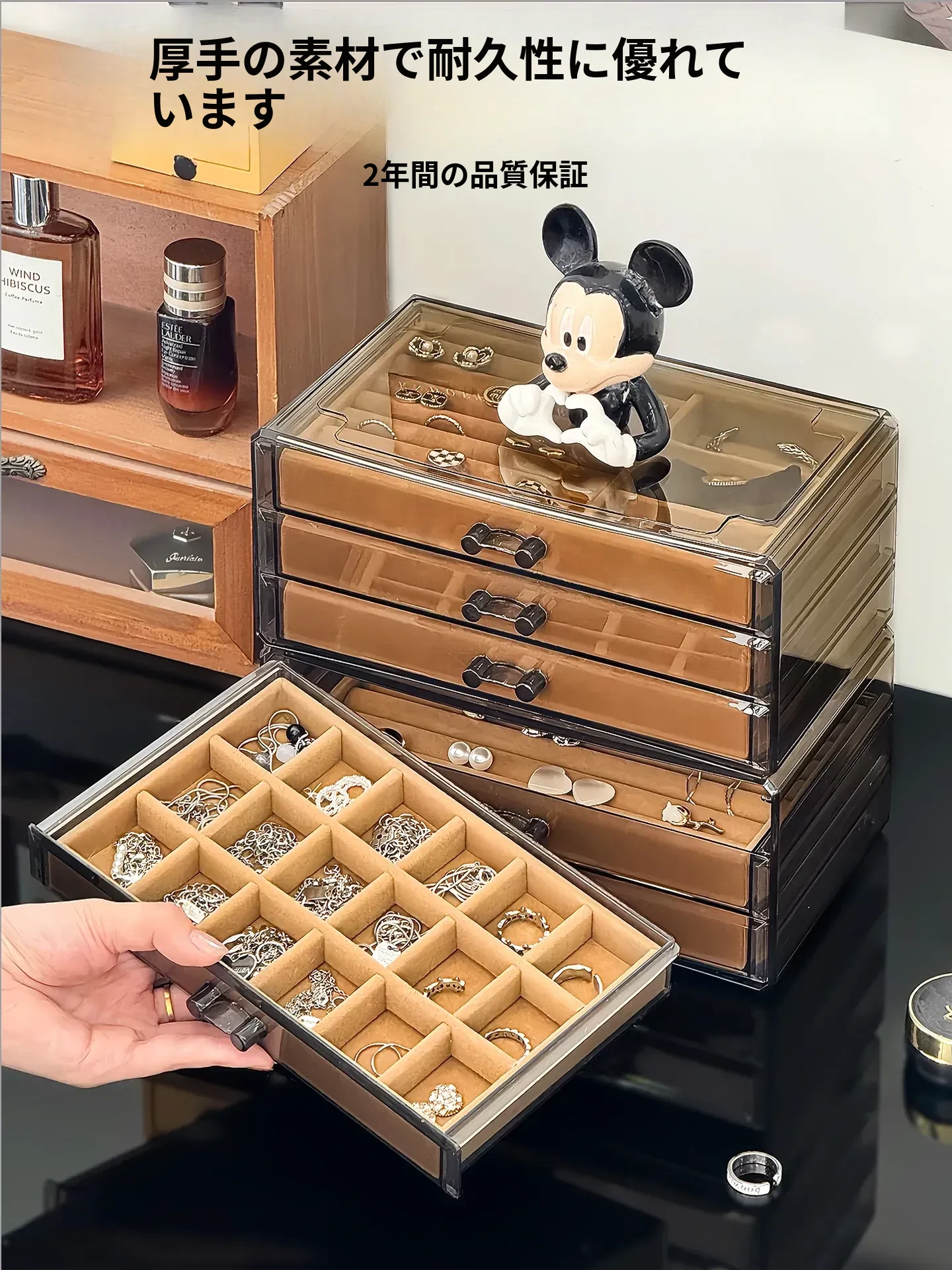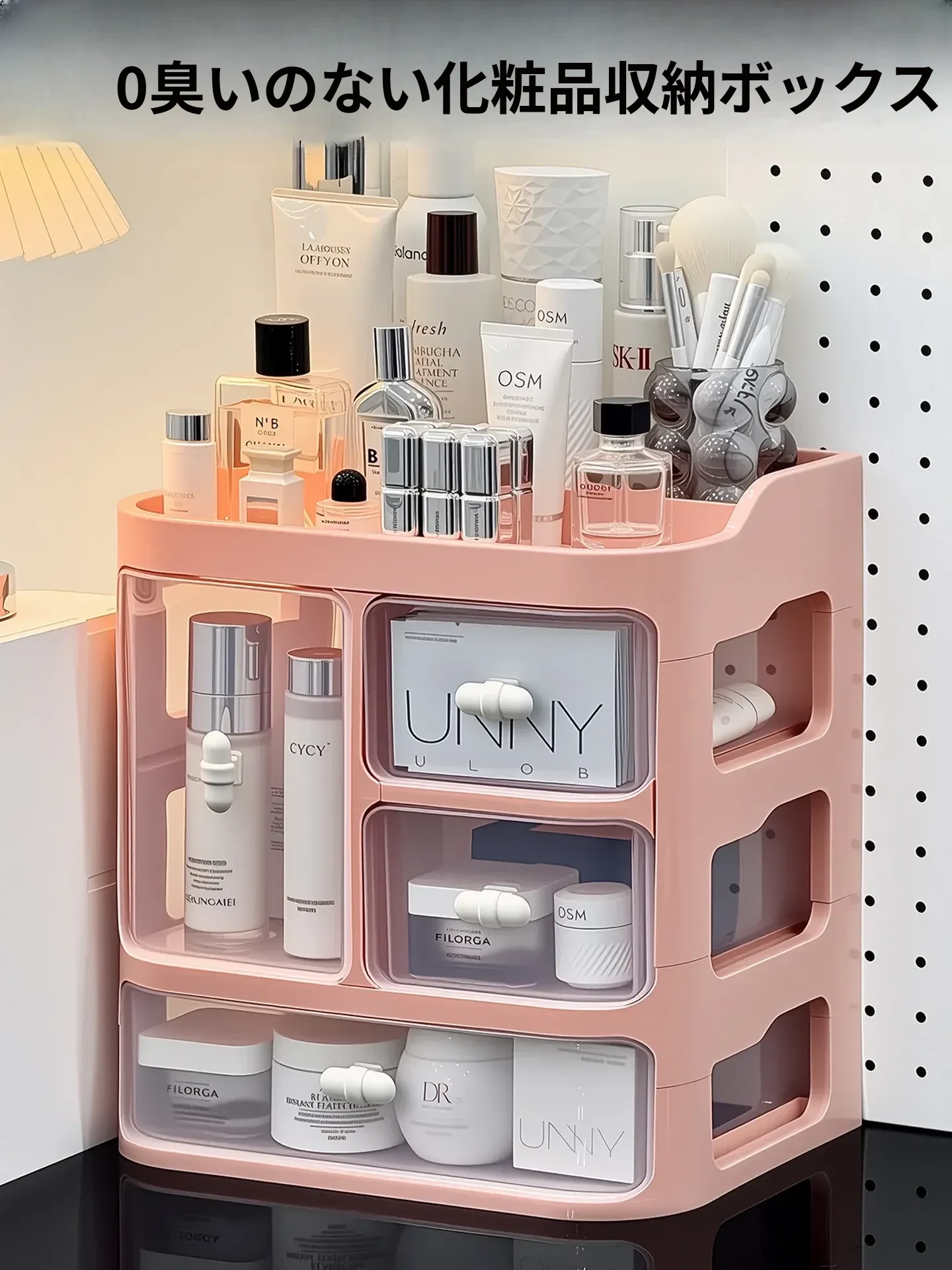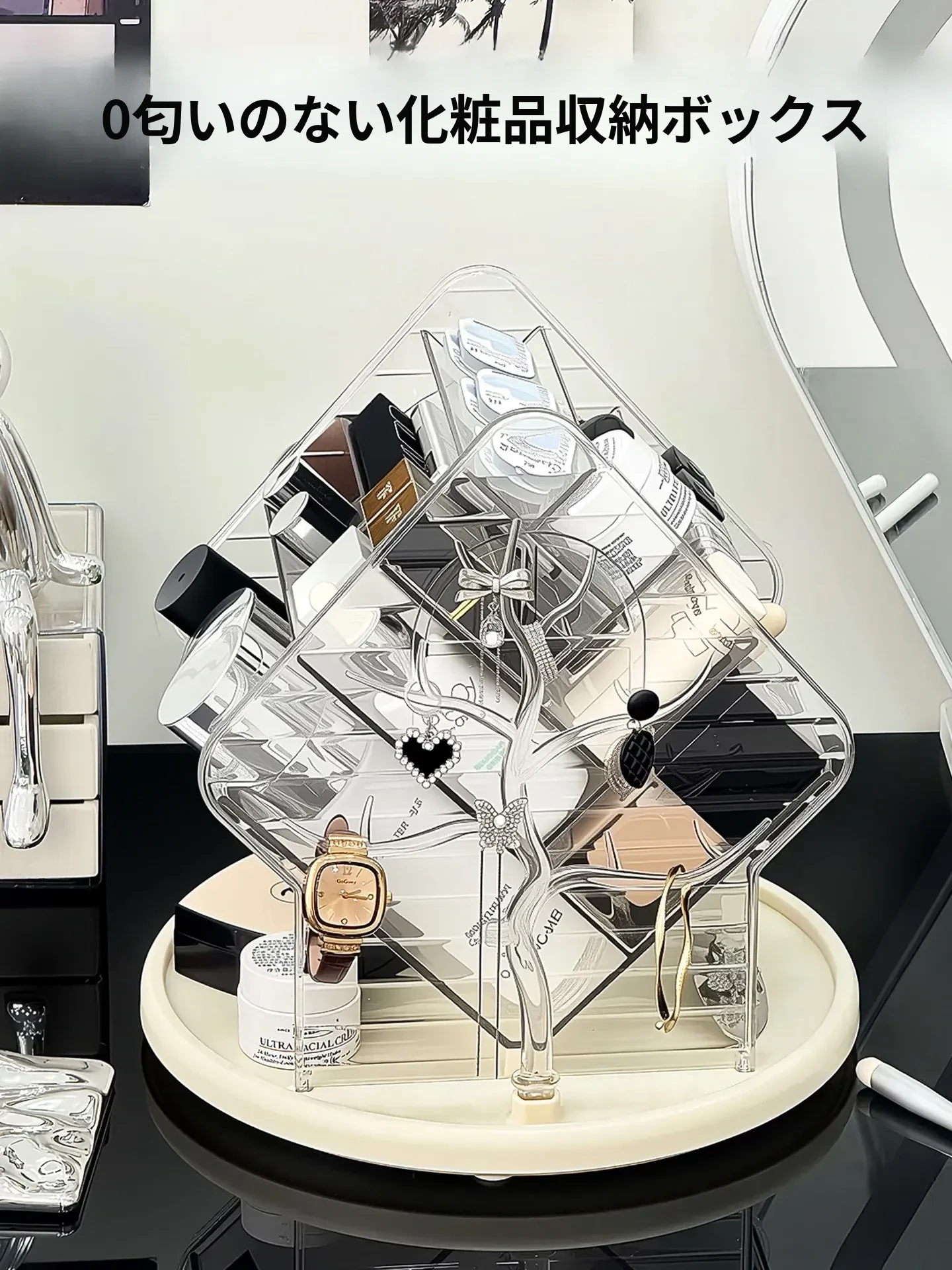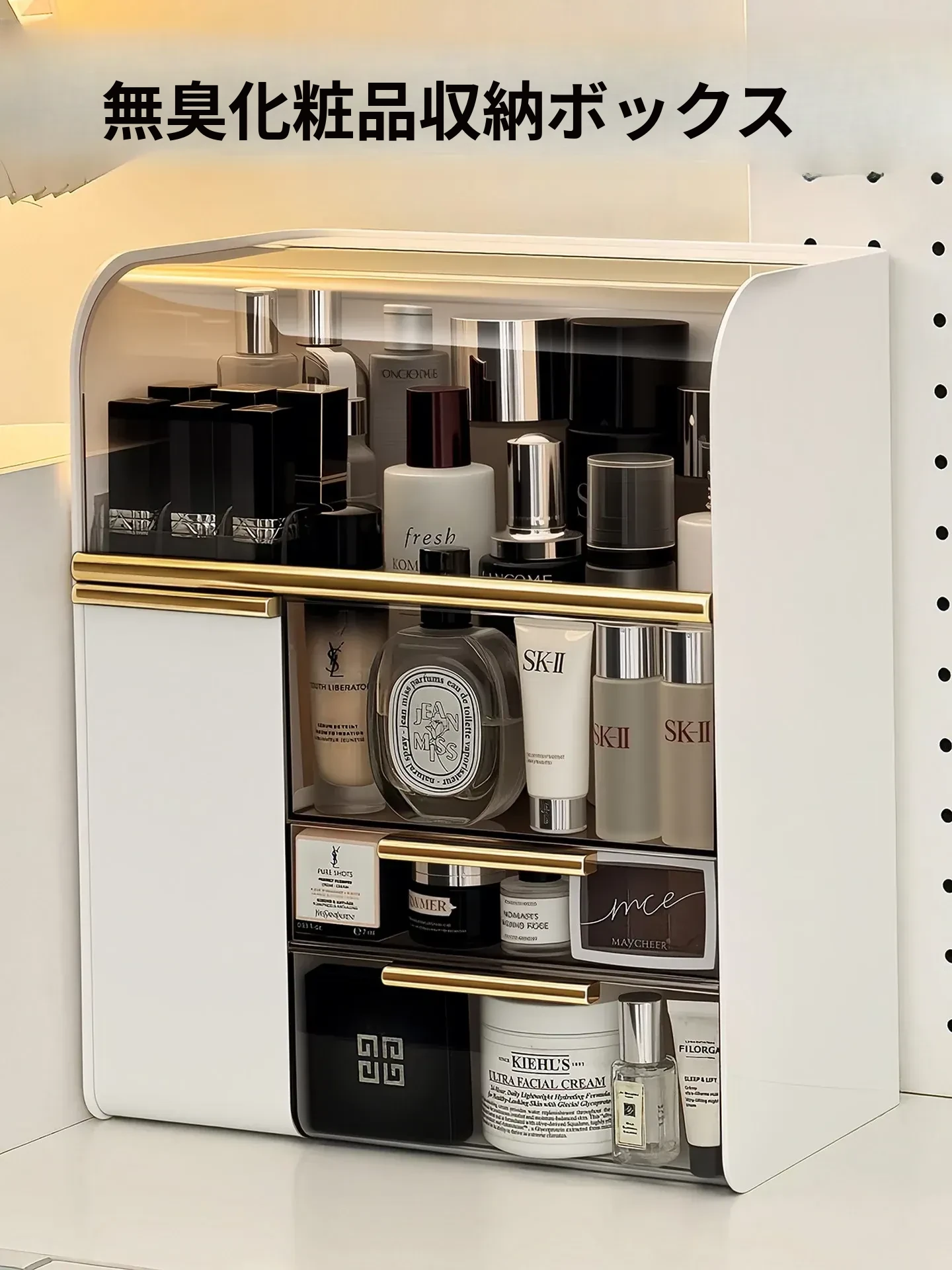 高級感あふれる化粧品収納ボックス!防塵設計で大容量、デスクトップをすっきり整理。化粧台やスキンケア用品、香水を美しくディスプレイ!あなたの美容空間をグレードアップします。