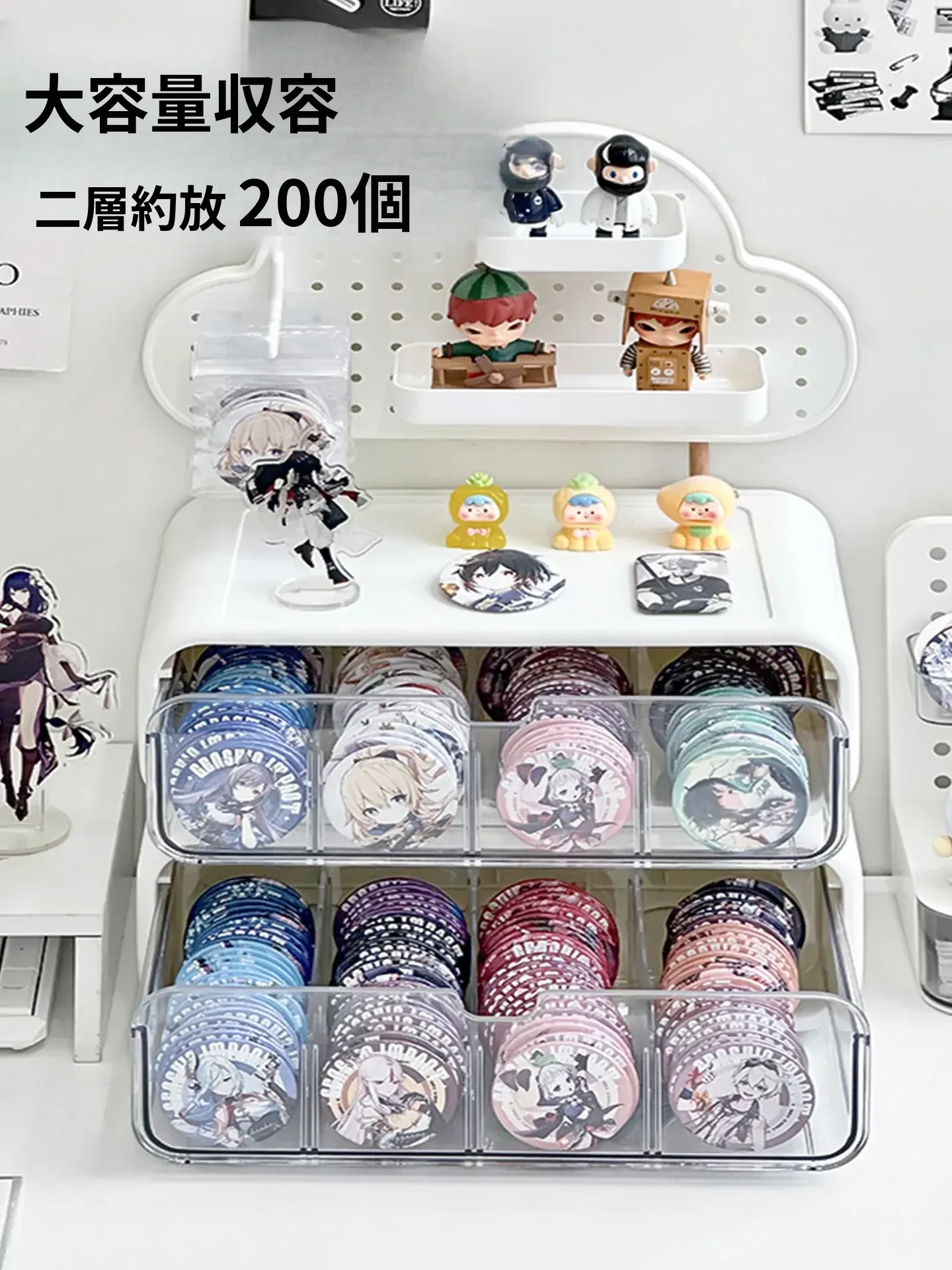 透明防塵展示架付き!多機能分格収納ボックス - バッジや小物をすっきり整理!引き出し式で便利な周辺収納。あなたのコレクションを美しく飾りましょう!