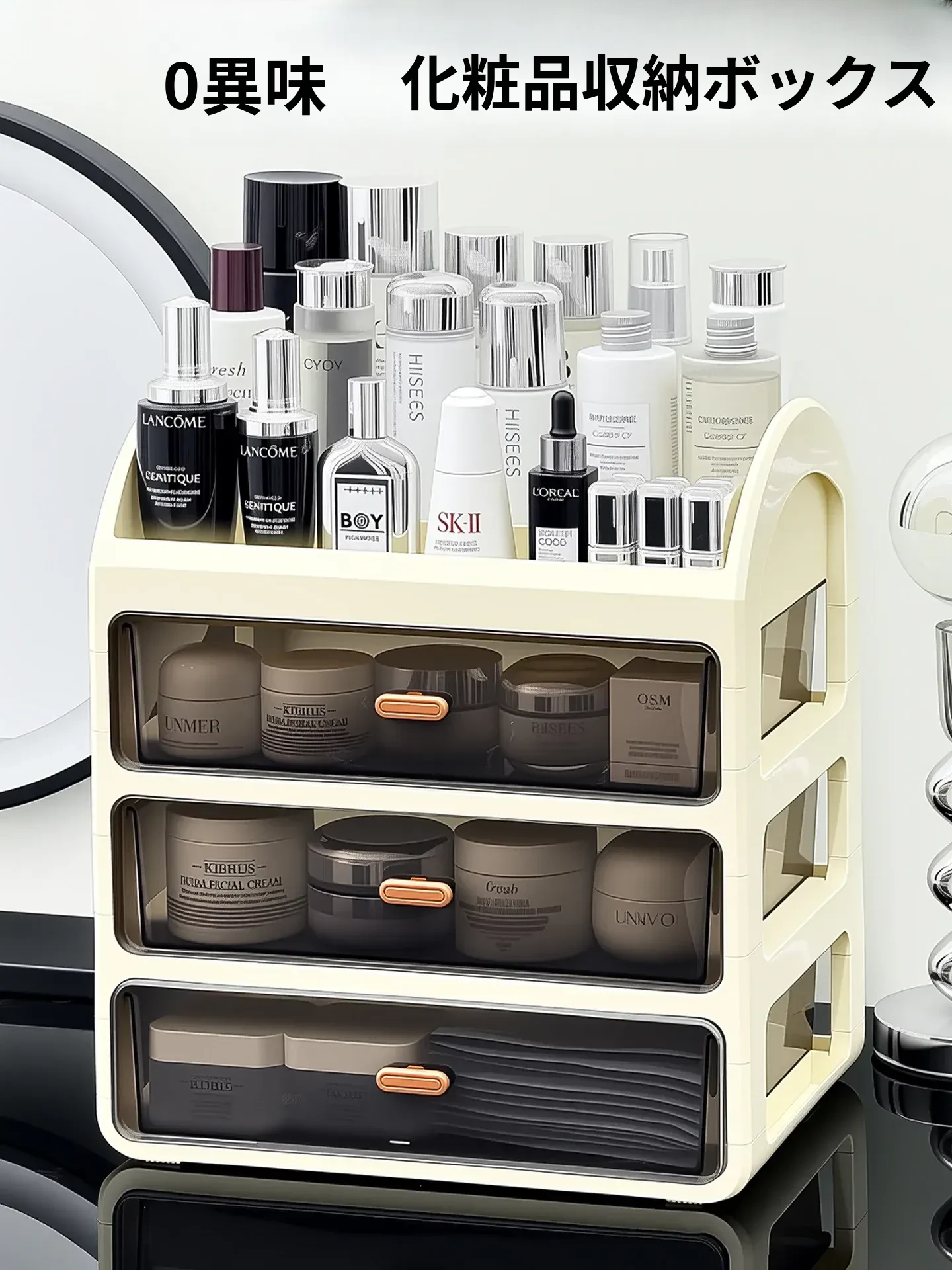 高級感あふれる化粧品収納ボックス!防塵&大容量で2025年新作のスキンケアアイテム収納ラック。フェイスマスクもスッキリ整理できる便利なキャビネットです。