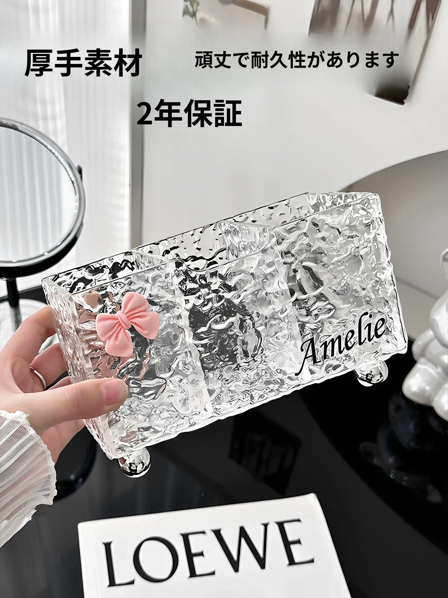 高級感溢れる大容量化粧品収納ボックス!デスク上の埃をシャットアウトし、メイク台を美しく整理整頓。スキンケアや香水もすっきり収納できる、あなたの美しさを引き立てる必須アイテム!
