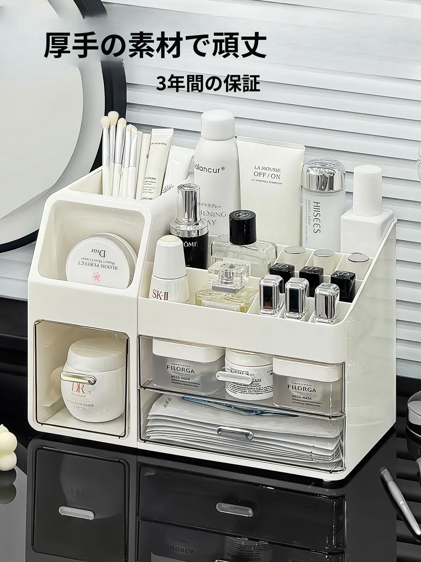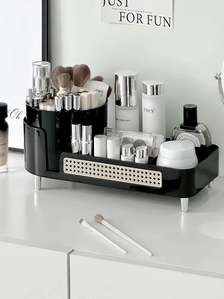 化粧品収納ボックス 大容量デスクトップ化粧台 収納力抜群!高級感あふれるリップや化粧ブラシもすっきり整理!おしゃれで機能的なスキンケアアイテムの置き場に最適!