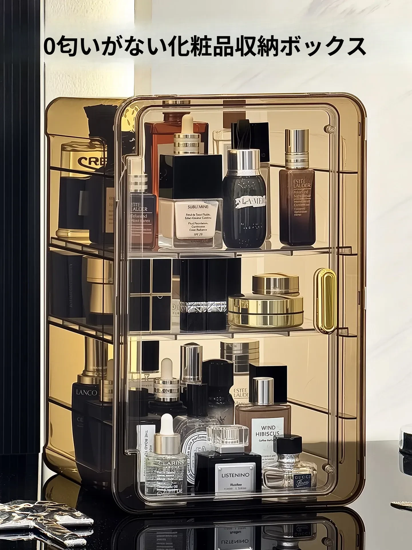 高級感溢れる化粧品収納ボックス - スタイリッシュなスキンケア用棚、メイク台の上に最適なフェイスマスクや香水の整理ボックス!美しく整った空間で、あなたのビューティーライフをもっと素敵に!