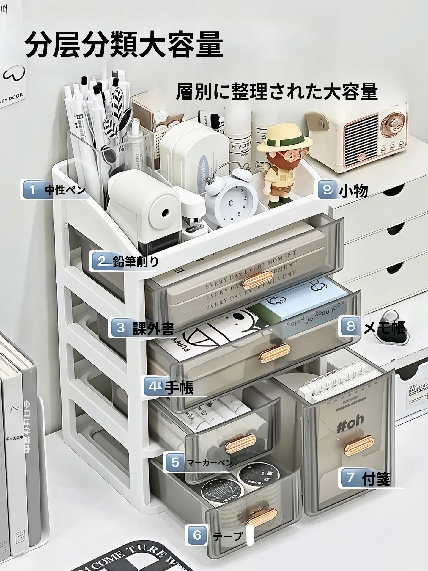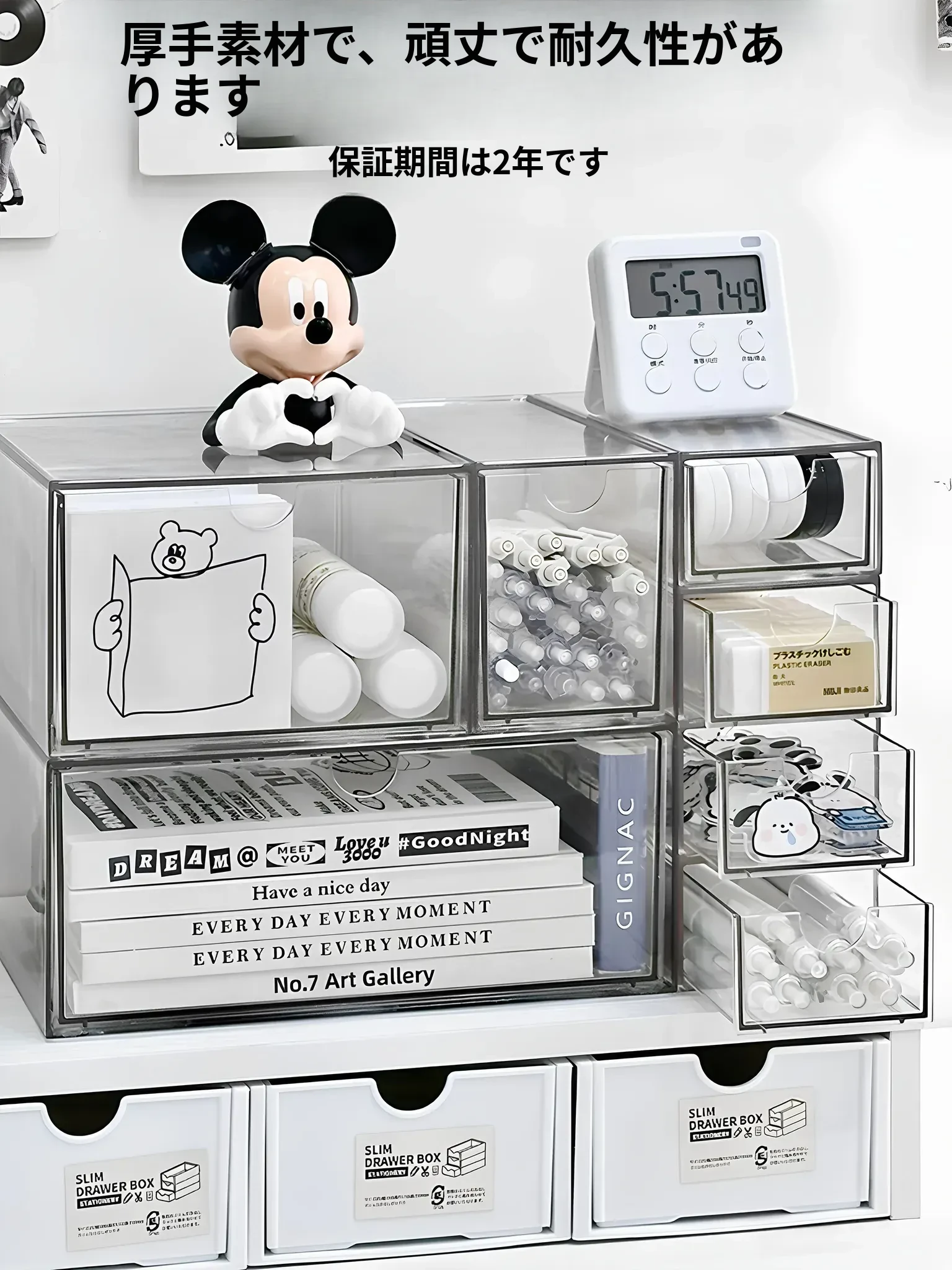 デスク整理に最適!大容量アクリル収納ボックス - 学生やオフィスにぴったりな文具・書類整理用引き出し式ラック