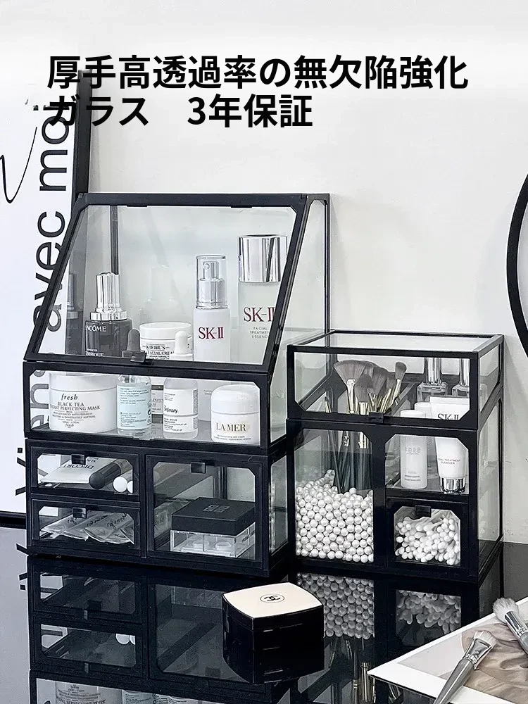 高級感漂う化粧品収納ボックス|デスクトップ用大容量メイク台|スキンケアアイテムやフェイスマスク、リップスティックを整理整頓!あなたの美を引き立てる完璧なアイテム!