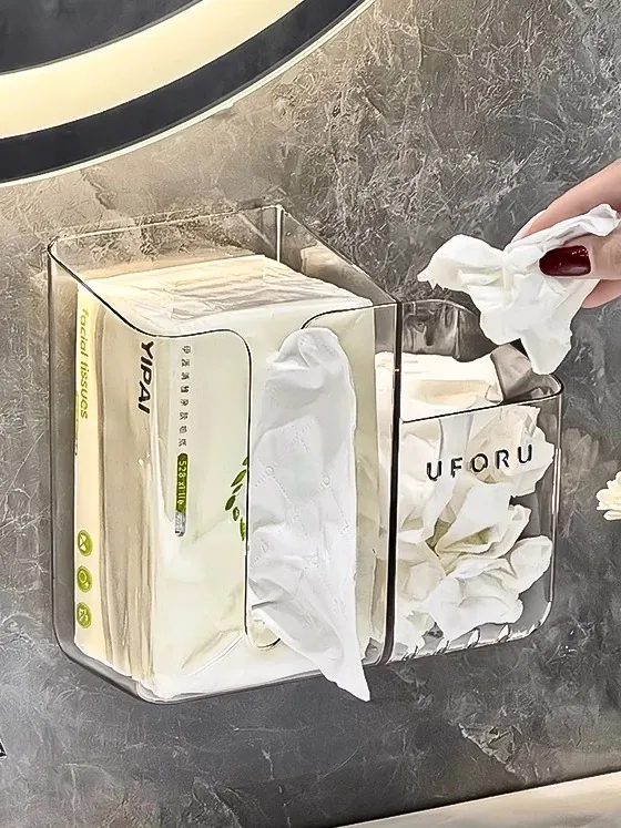 おしゃれな壁掛け洗顔タオル収納ボックス - 高品質なフェイスタオルやコットンタオルをスマートに収納!洗面所をスタイリッシュに演出し、便利さと美しさを両立。