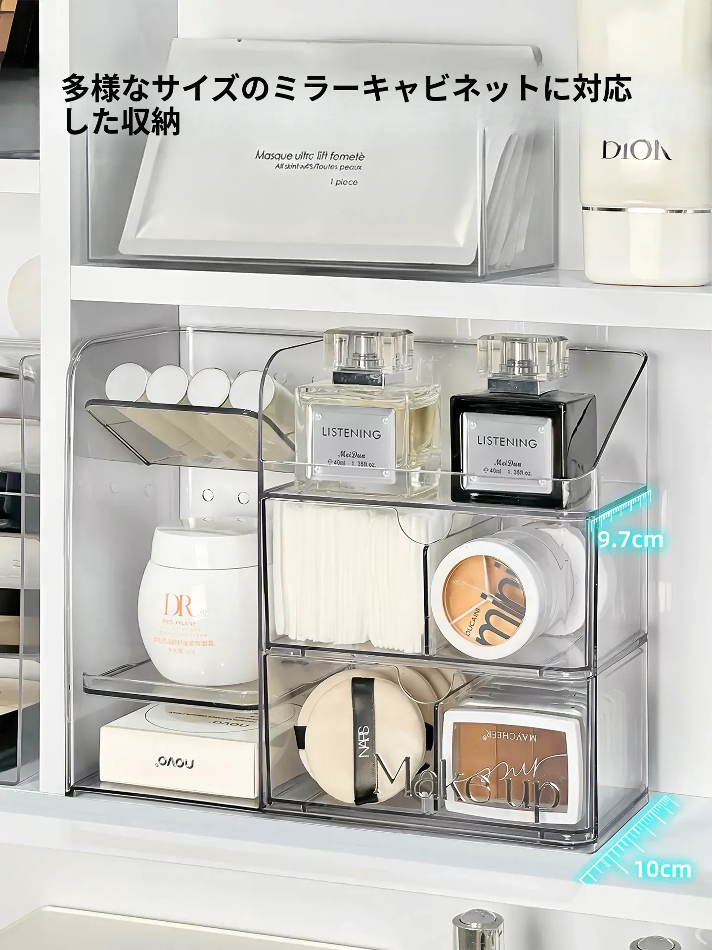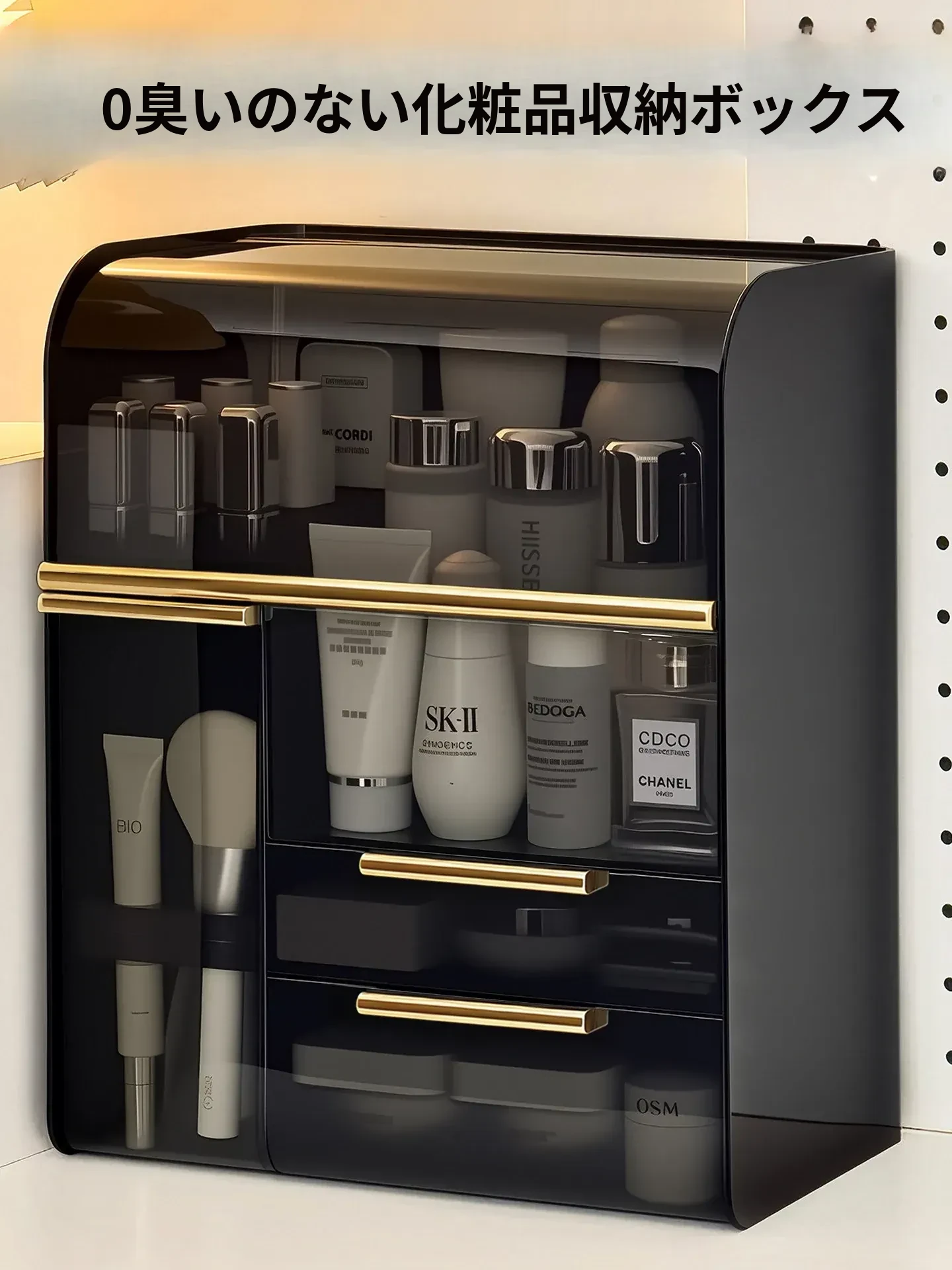 高級感漂う化粧品収納ボックス|デスクトップ用大容量メイク台|スキンケアアイテムやフェイスマスク、リップスティックを整理整頓!あなたの美を引き立てる完璧なアイテム!