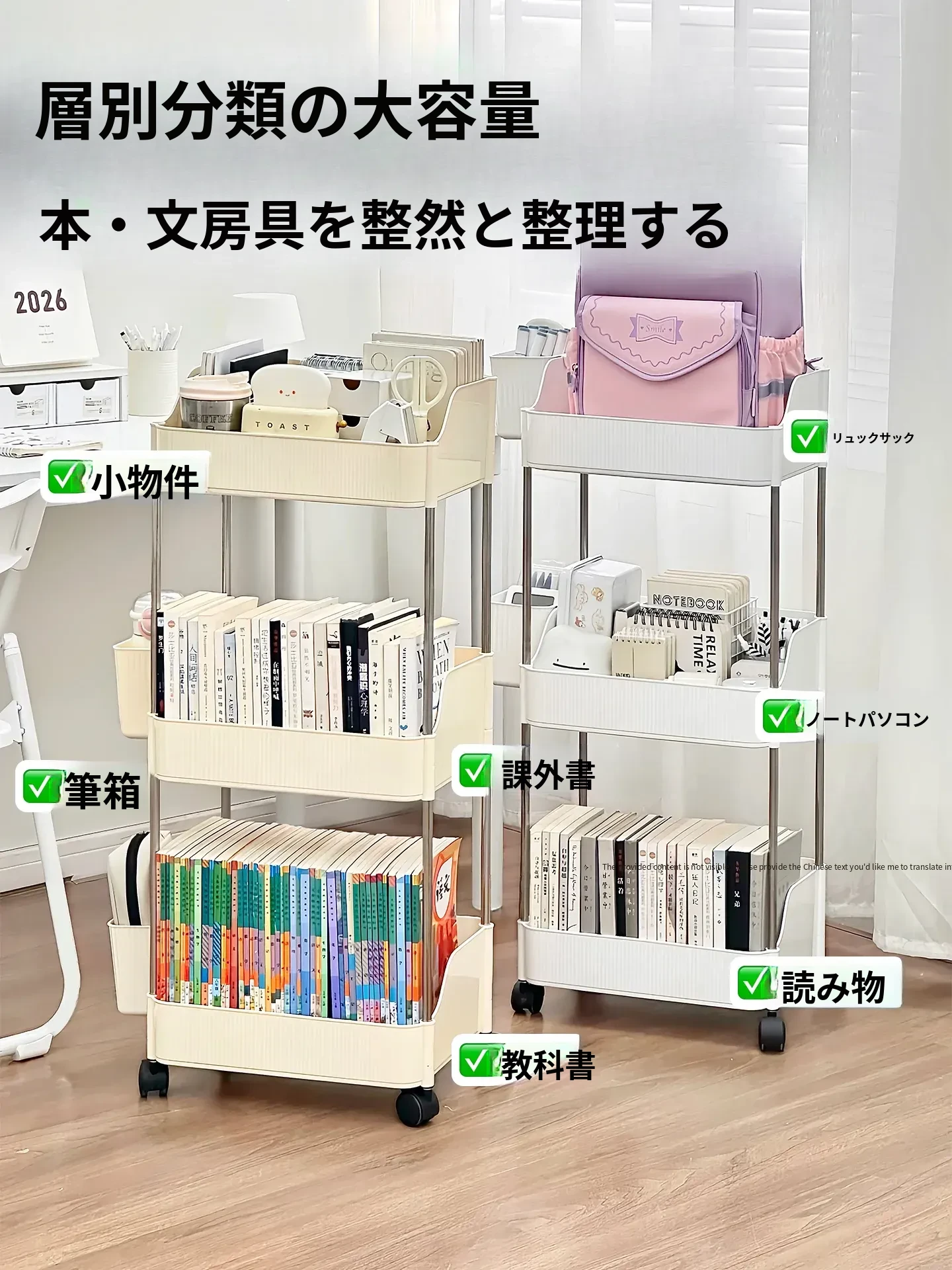 デスク下移動収納ラック - オフィスやワークスペースに最適な整理整頓の必需品!雑貨の仕分けにも便利なキャスター付き小型ワゴンで、寮生活にも大活躍!