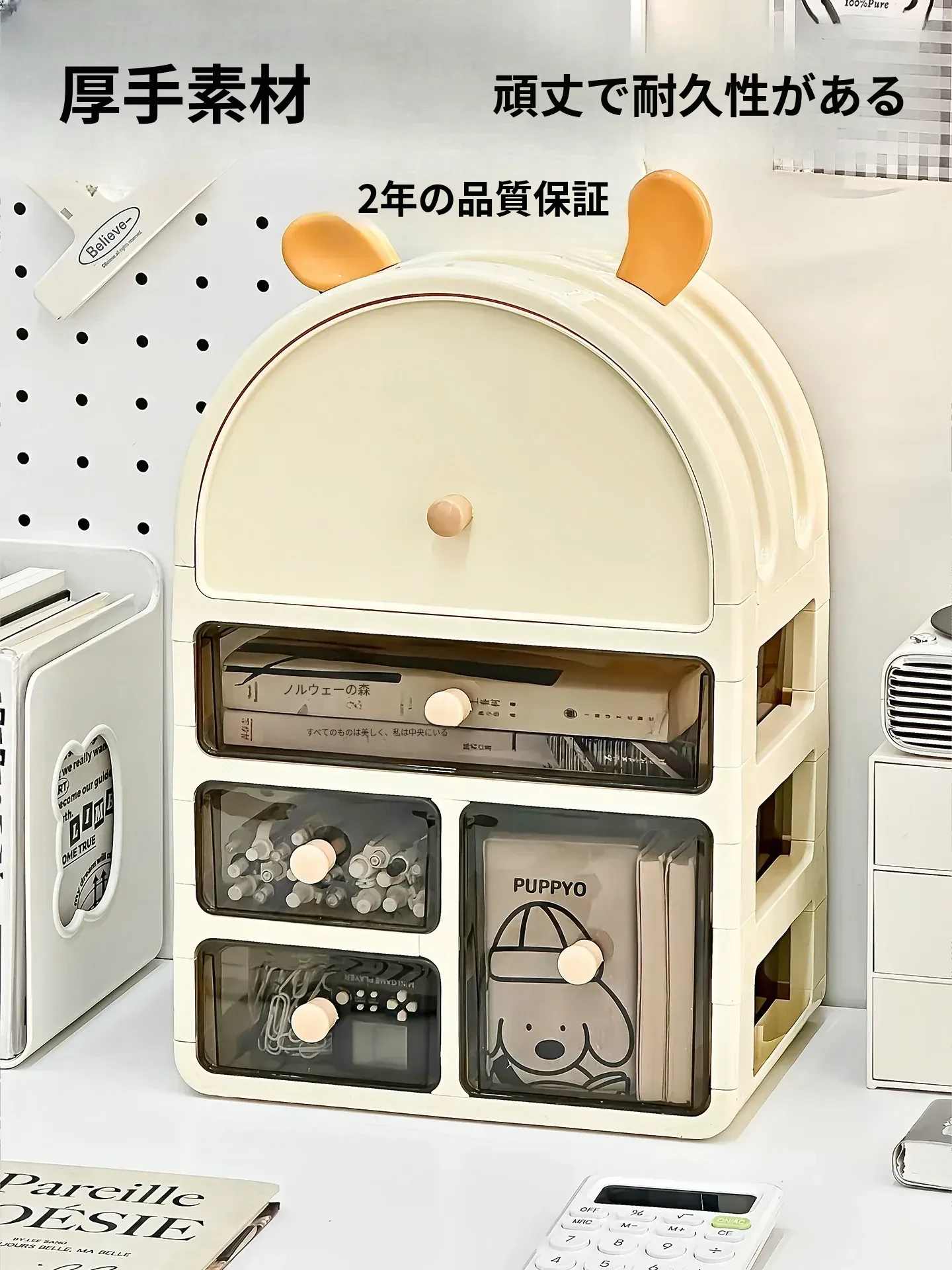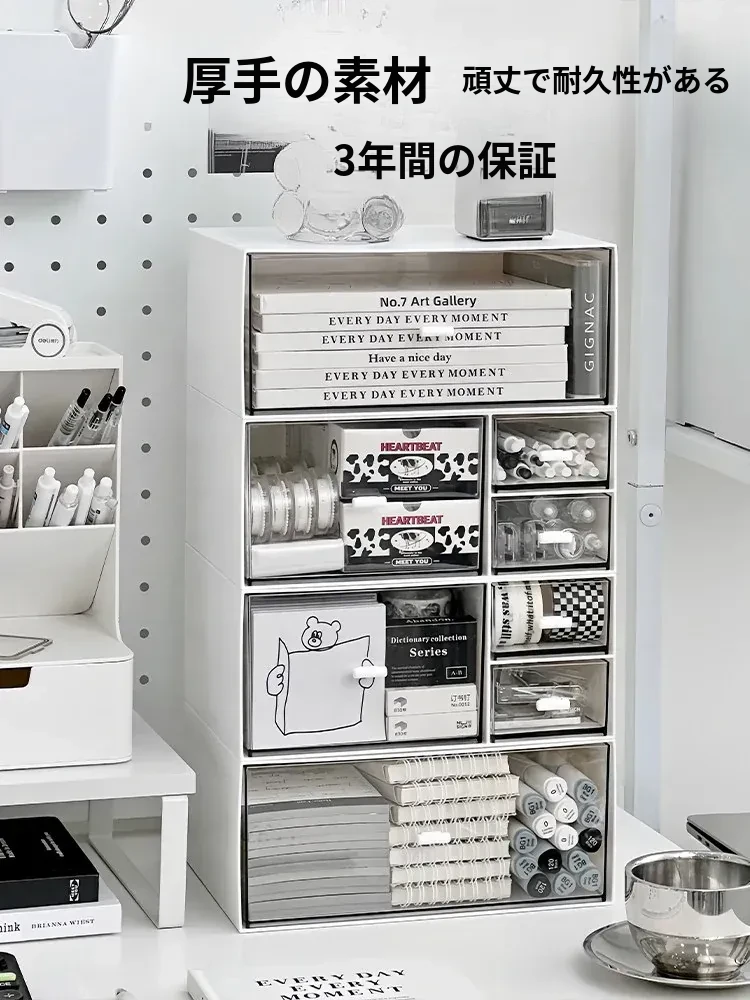 デスク整理に最適!大容量アクリル収納ボックス - 学生やオフィスにぴったりな文具・書類整理用引き出し式ラック
