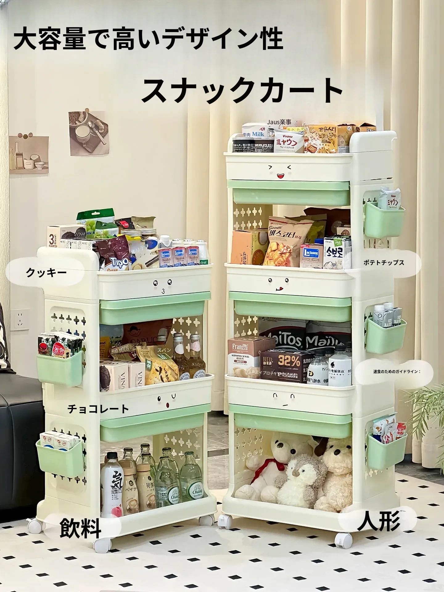 移動式おもちゃ&スナック収納ラック - 家庭用リビング&キッチンに最適な多層整理棚!使い勝手抜群で、どこでも簡単に移動可能!お部屋をすっきり整頓しましょう!