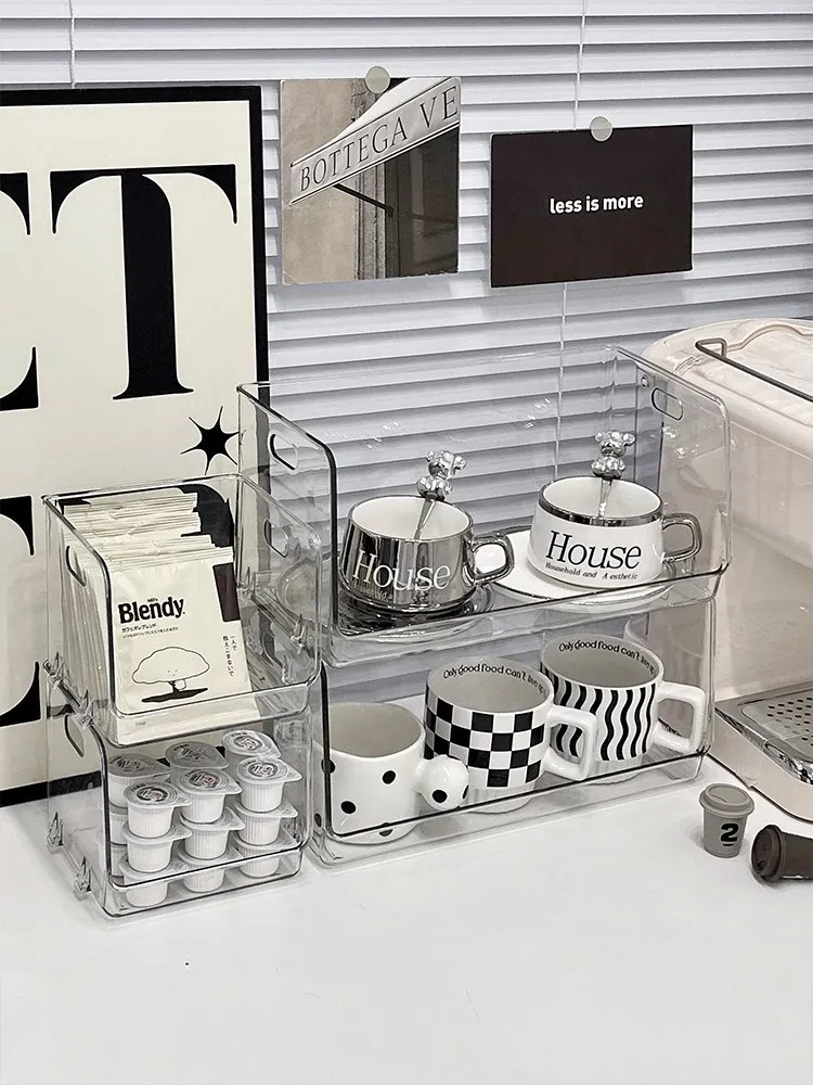 アクリル製透明ティーバッグ収納ボックス コーヒーカプセル・マグカップ・小物整理に最適!大容量でスッキリ片付く、家庭での使い勝手抜群のデスクオーガナイザー!