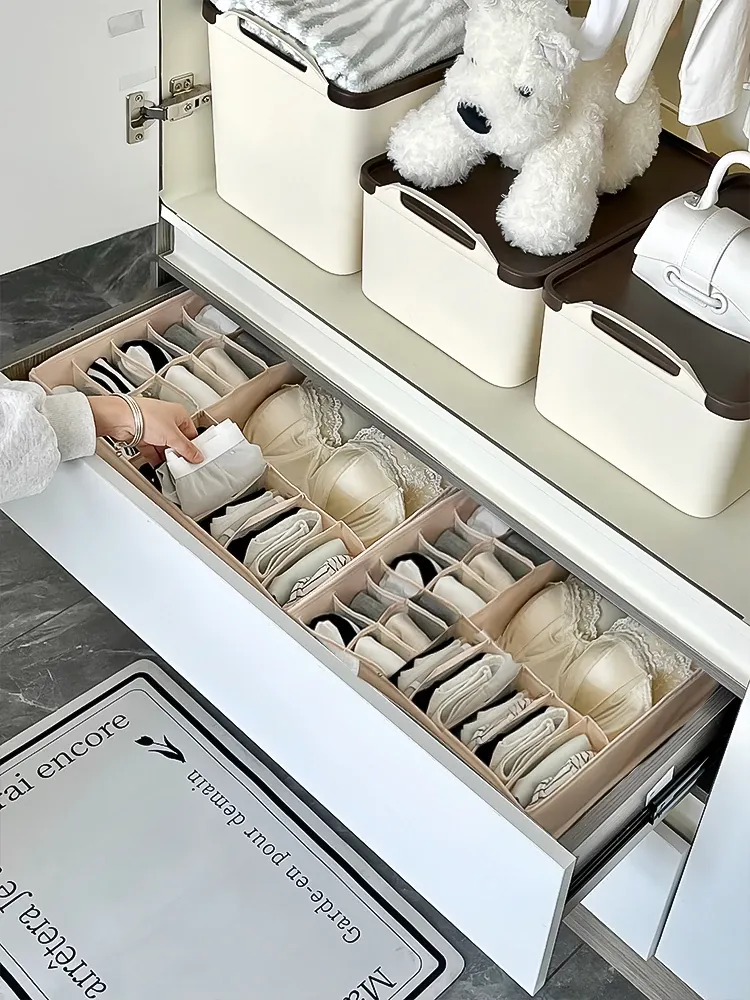 整理整頓に最適!ブラジャーや靴下をすっきり収納できる衣類収納ボックス。おしゃれな布製で、クローゼットをスマートに演出。あなたの大切な下着を優しく守る、便利で実用的なアイテムです。